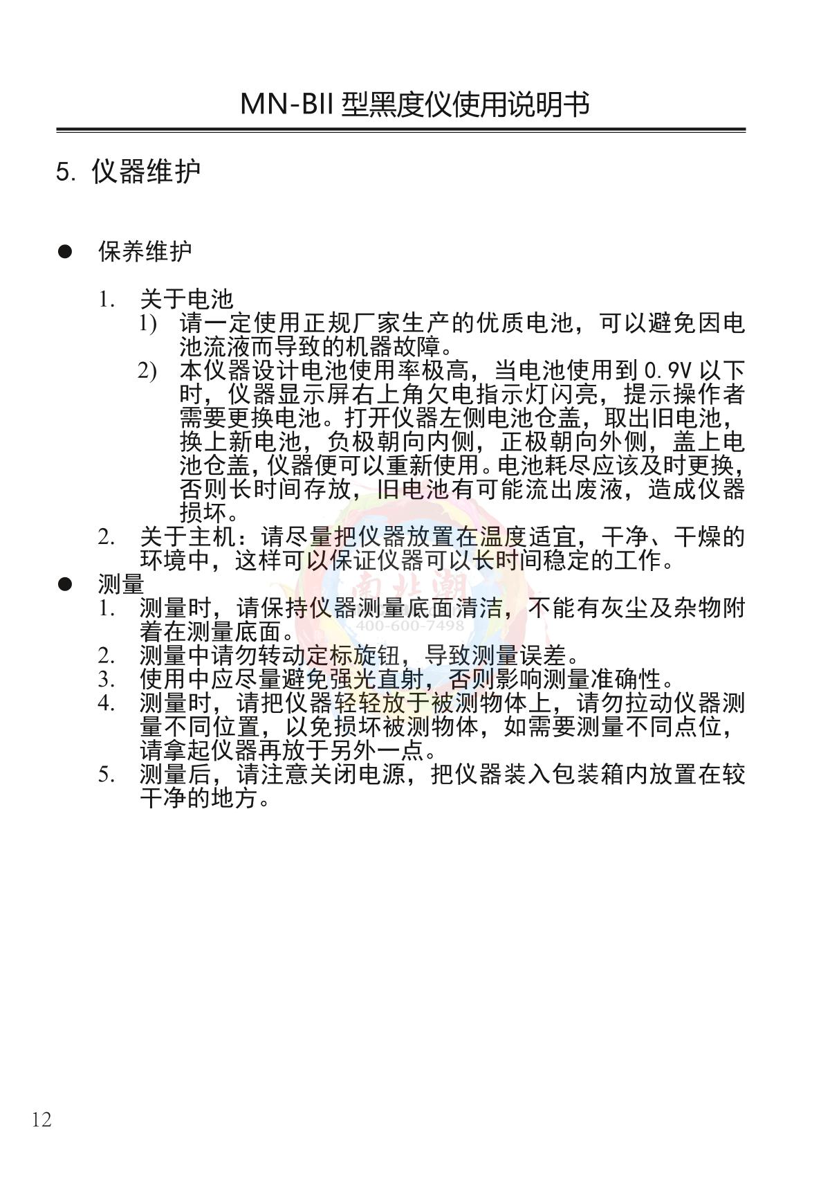 QiLi MN-BII Wet and dry dual-use Blackness meter Manual,OI