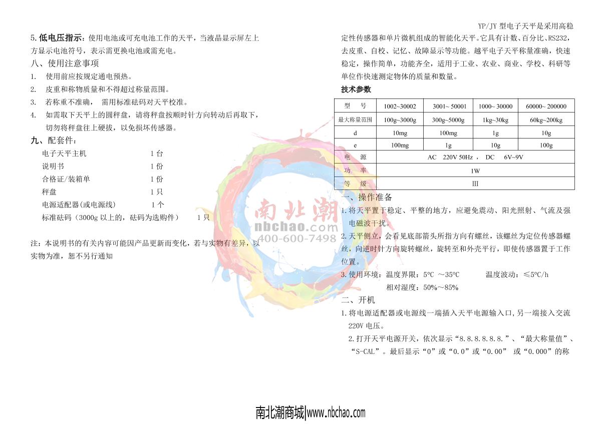 YuePing YP-30002 YP Electronic Balance (Square) Manual,OI