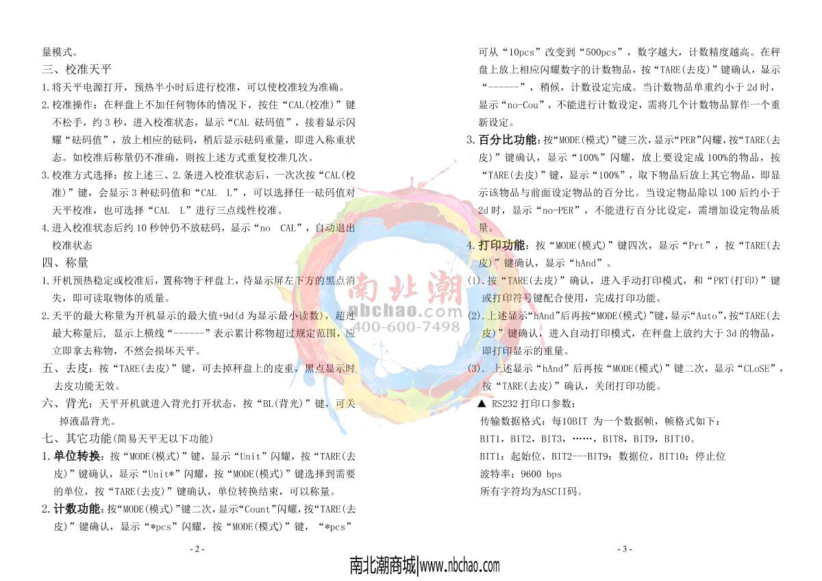 - 9HuaZhi PTL-3kg(0.05/0.05) Electronic Balance Manual