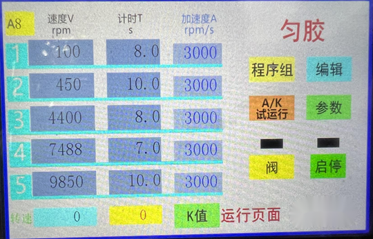 5. Automatically control the glue leveling process. Place the silicon wafer manually and press the start button to complete the glue dispersion process.
