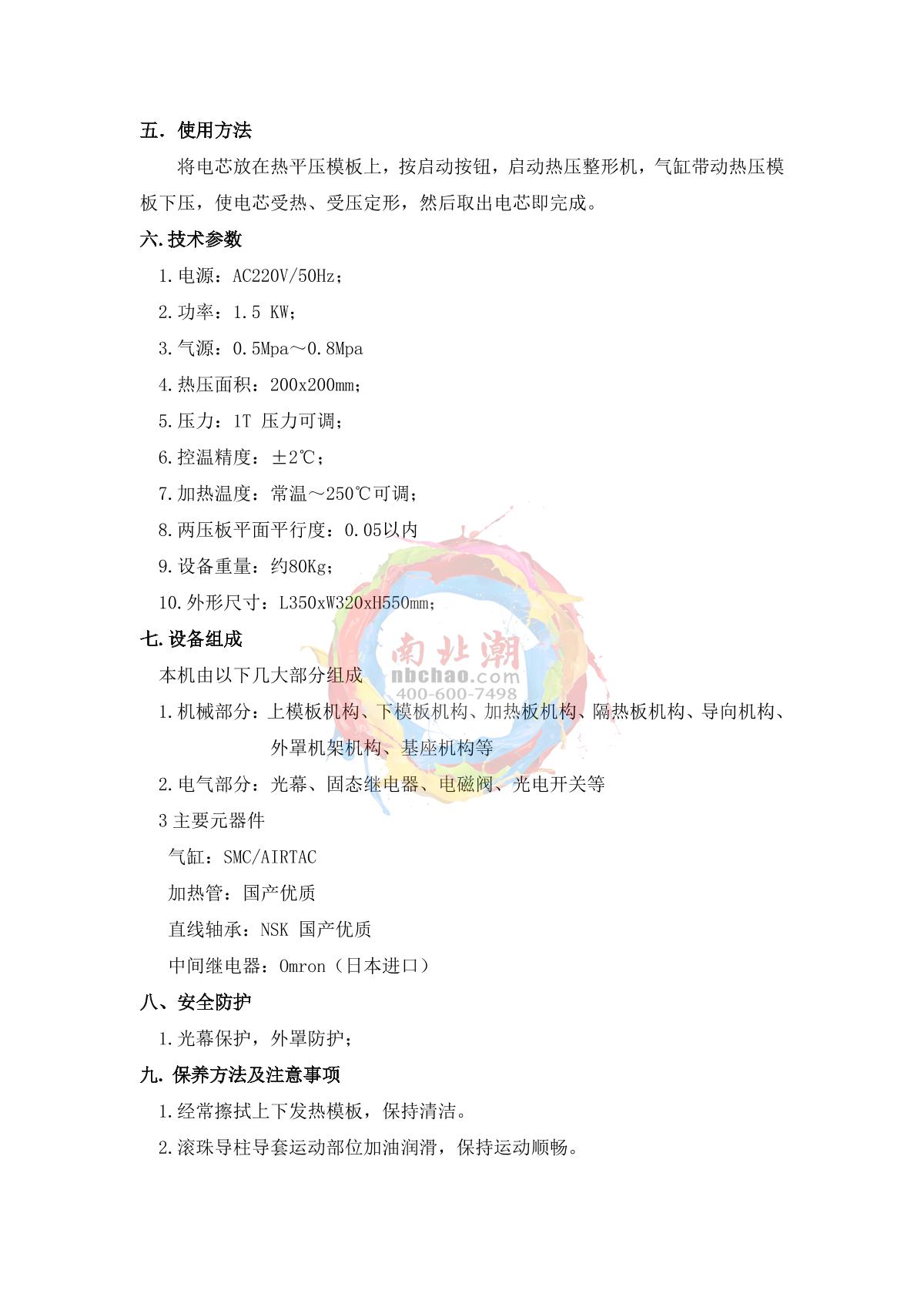 CHINA NBC-RY200 hot press shaping machine, soft pack lithium battery hot press shapingAC220V/50Hz1.5KW0.5Mpa~0.8Mpa¥32000.0SE -