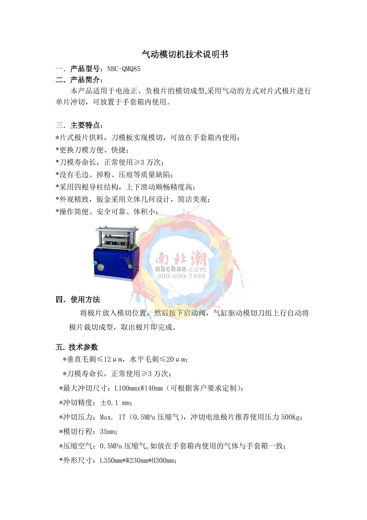 Factory NBC-QMQ85 Pneumatic die-cutting machine Manual,OI