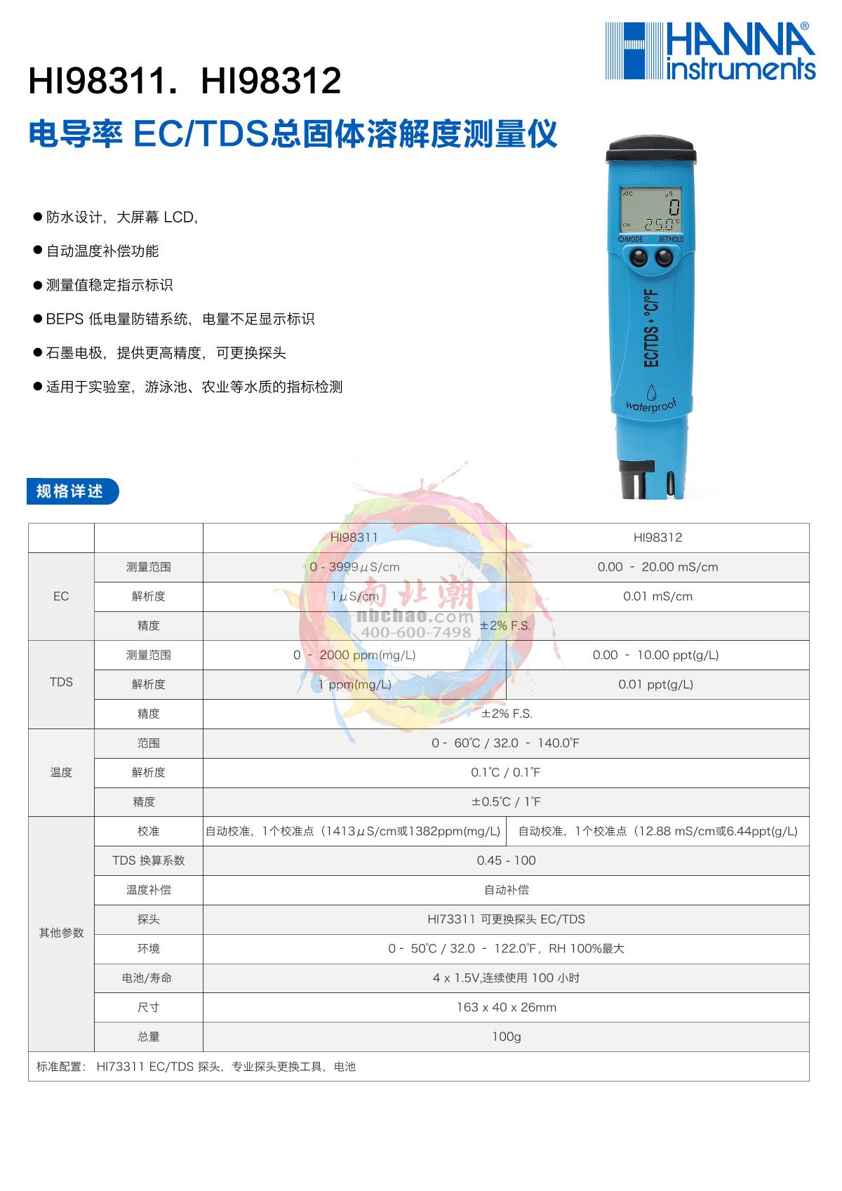 HANNA HI98311 Conductivity Meter brochure