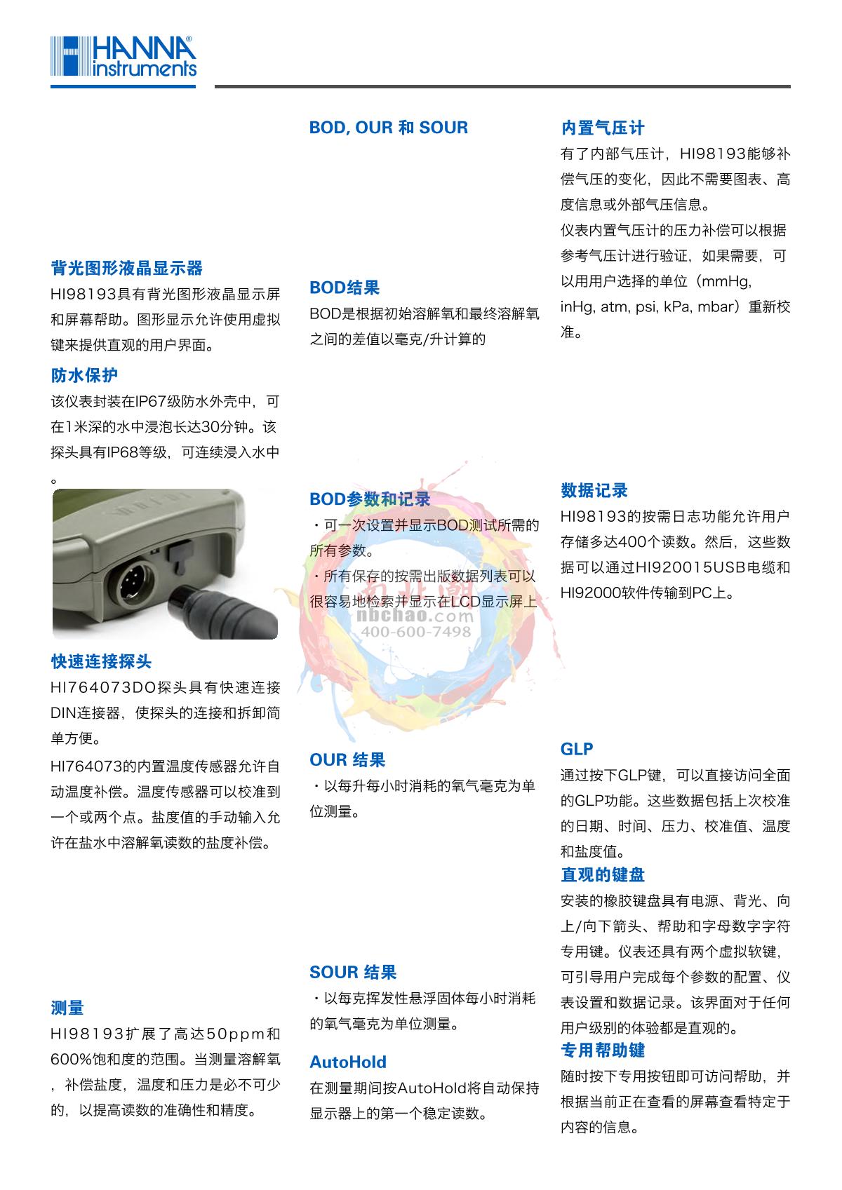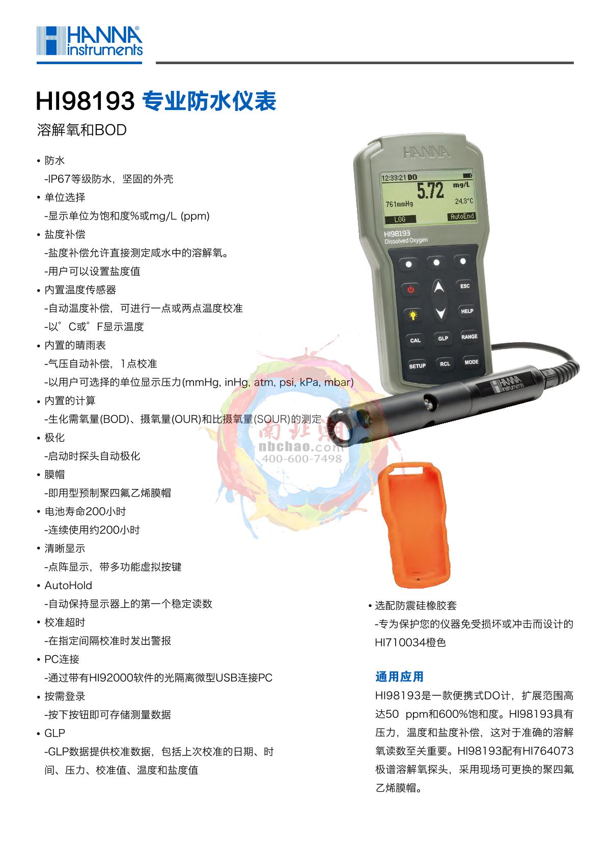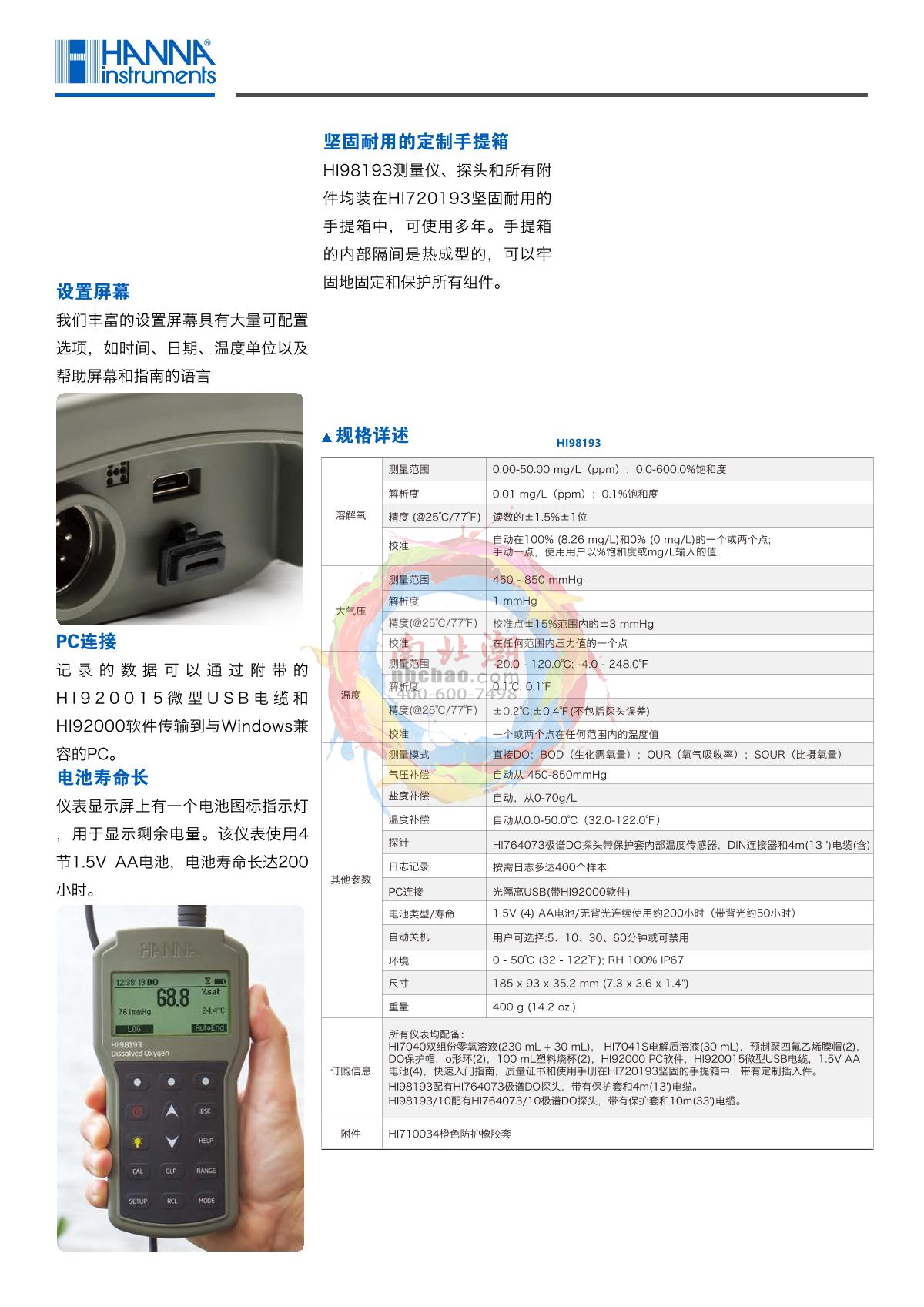 HANNA HI98193 Dissolved Oxygen Meter brochure