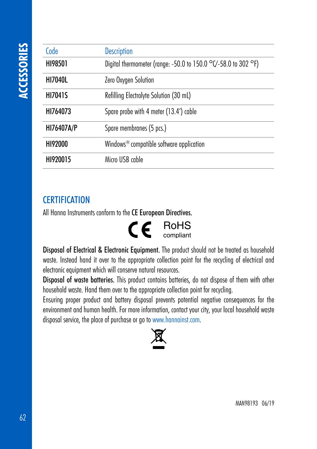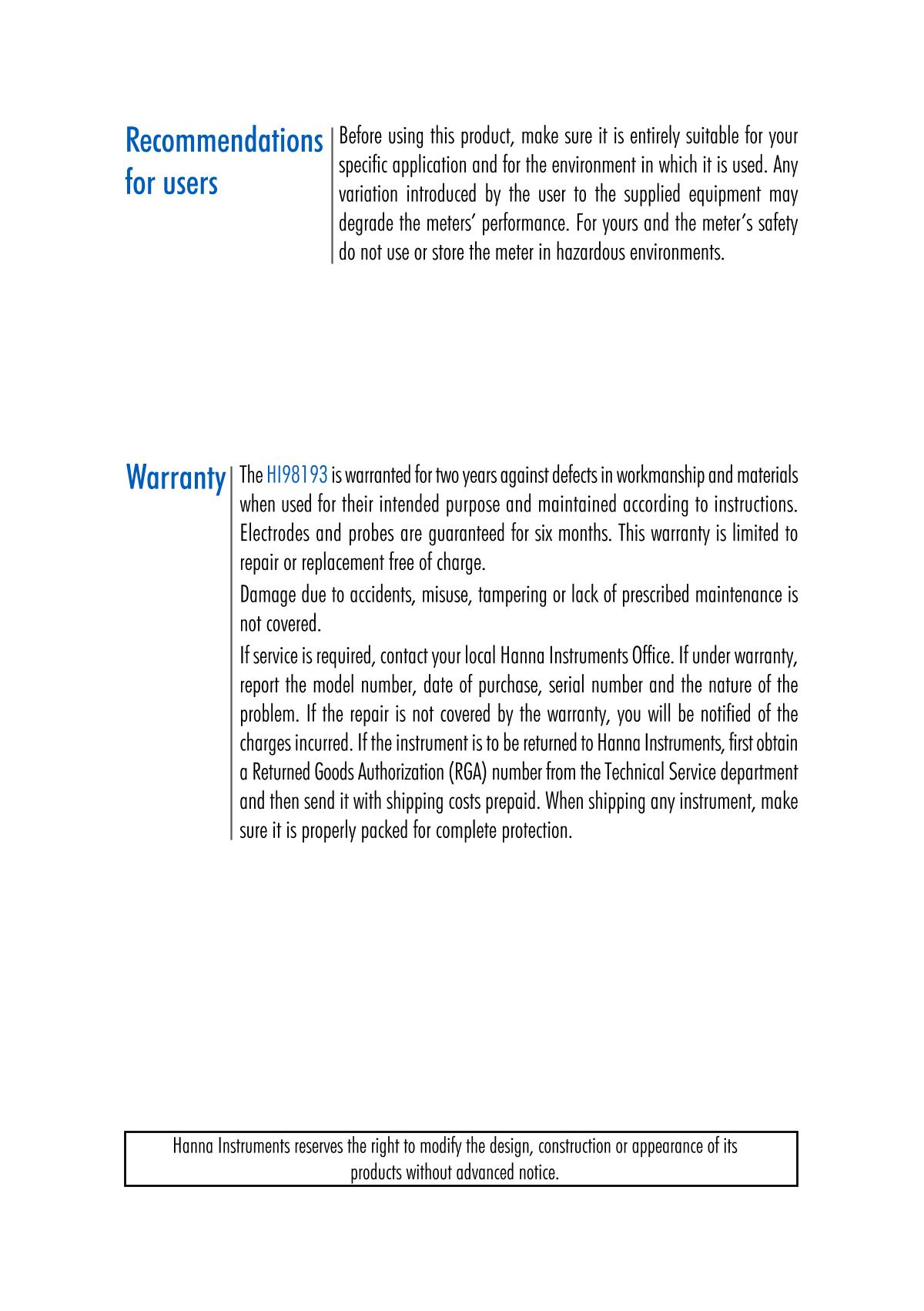 HANNA HI98193 Dissolved Oxygen Meter Manual,OI