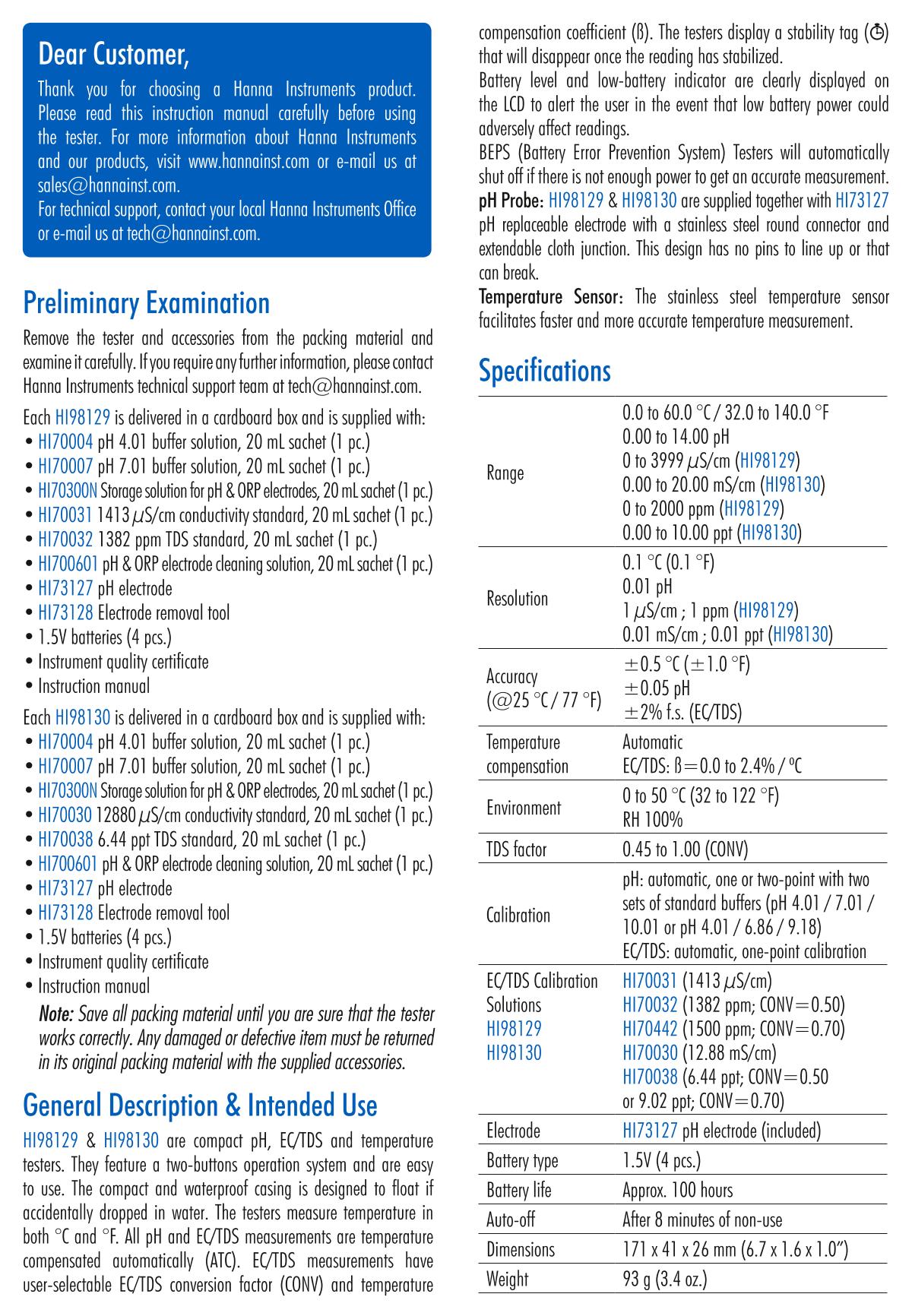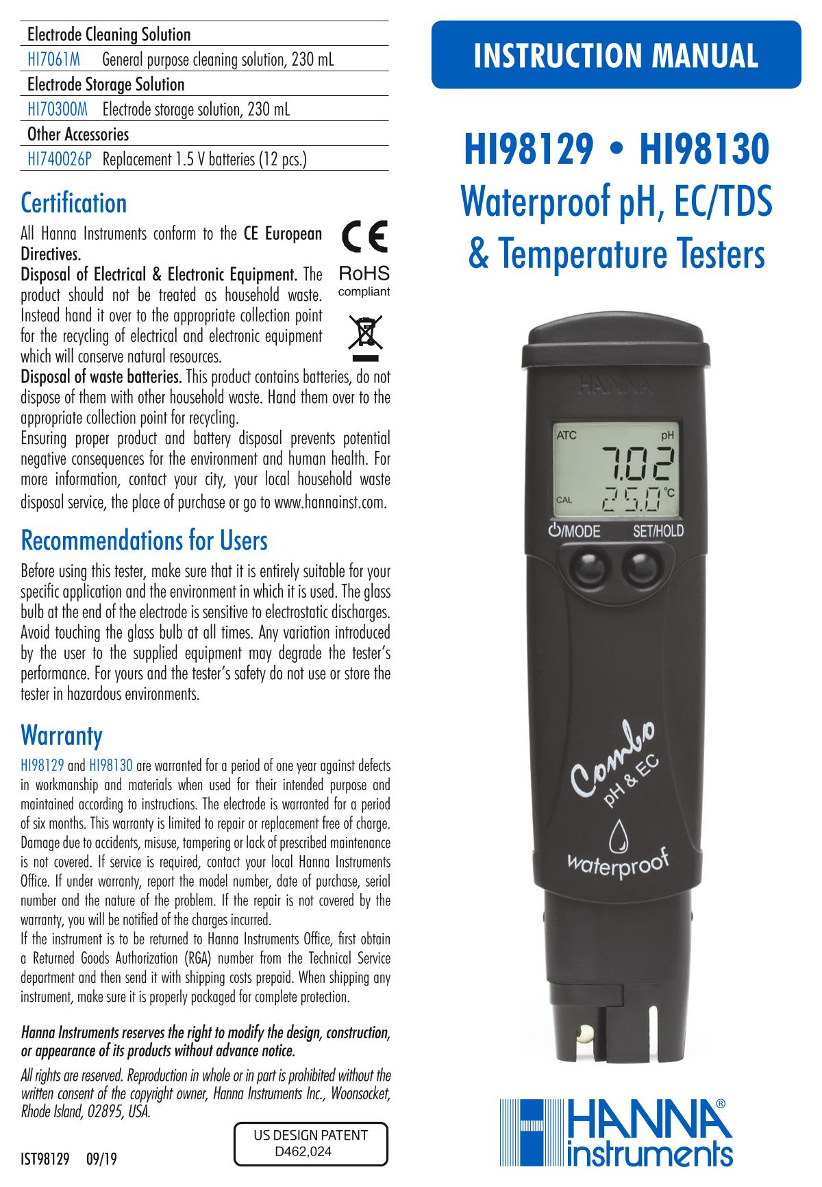 HANNA HI98130 Acidity meter Manual,OI