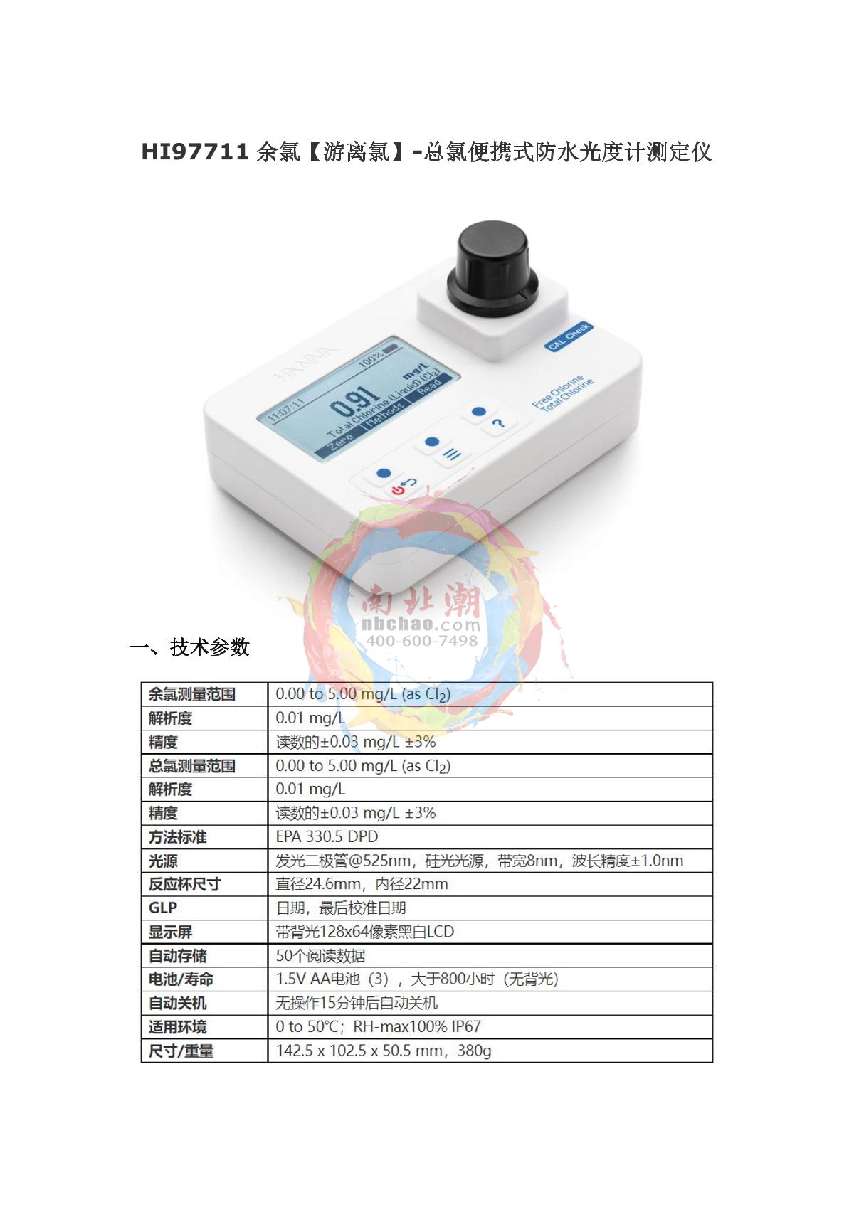 HANNA HI761 total chlorine ULR Tintometer0 to 500 ppb1 ppb+/- 5 ppb +/- 5% of the reading¥780.0SE -
