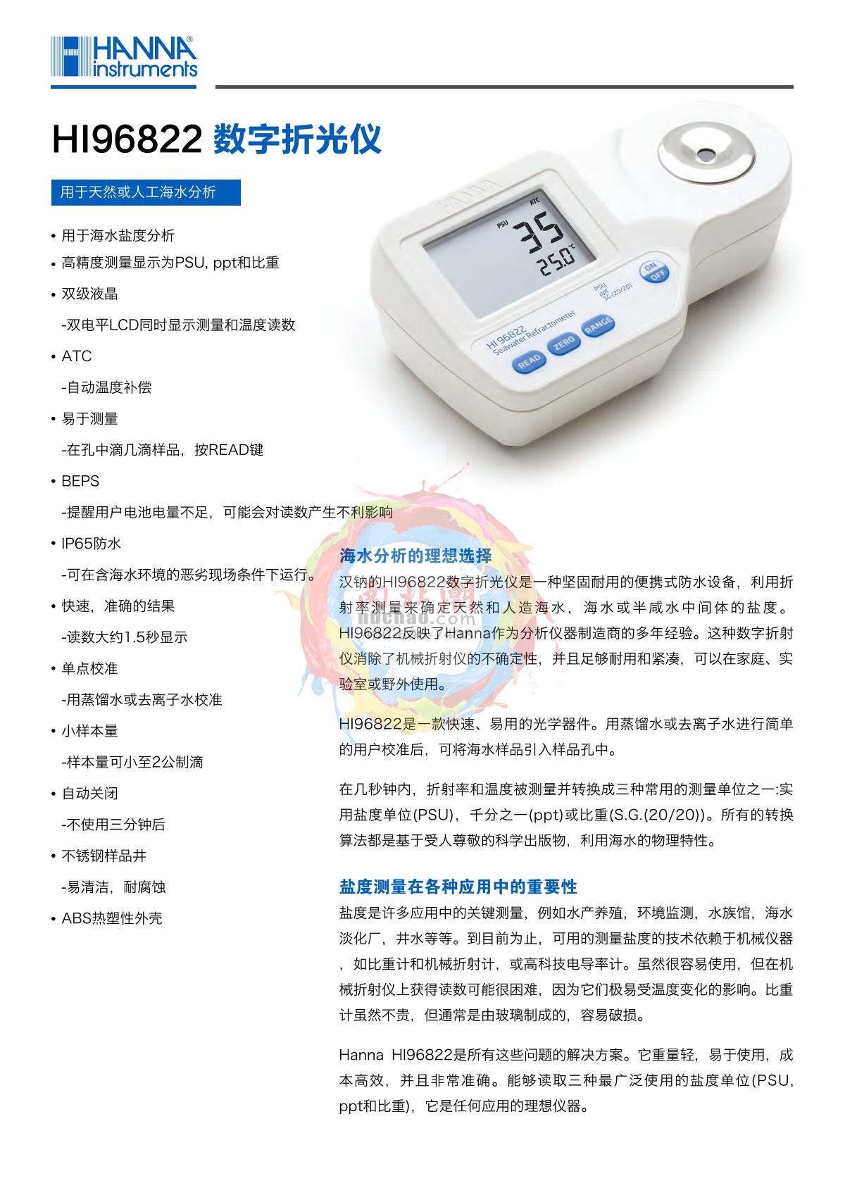 HANNA HI97105 multiparameter photometer for seawater0.1 pHColorimetric adaptability of phenol red method525 nm¥3740.0SE -