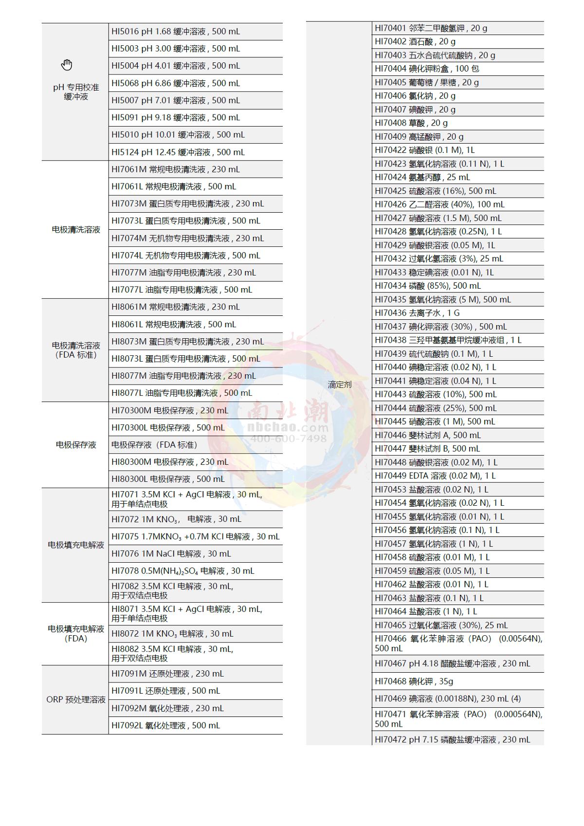 HANNA HI93709-01 Photometer Reagent Manganese 100 timesmanganese0.0~20.0 mg/L (as Mn)100 times¥760.0SE -