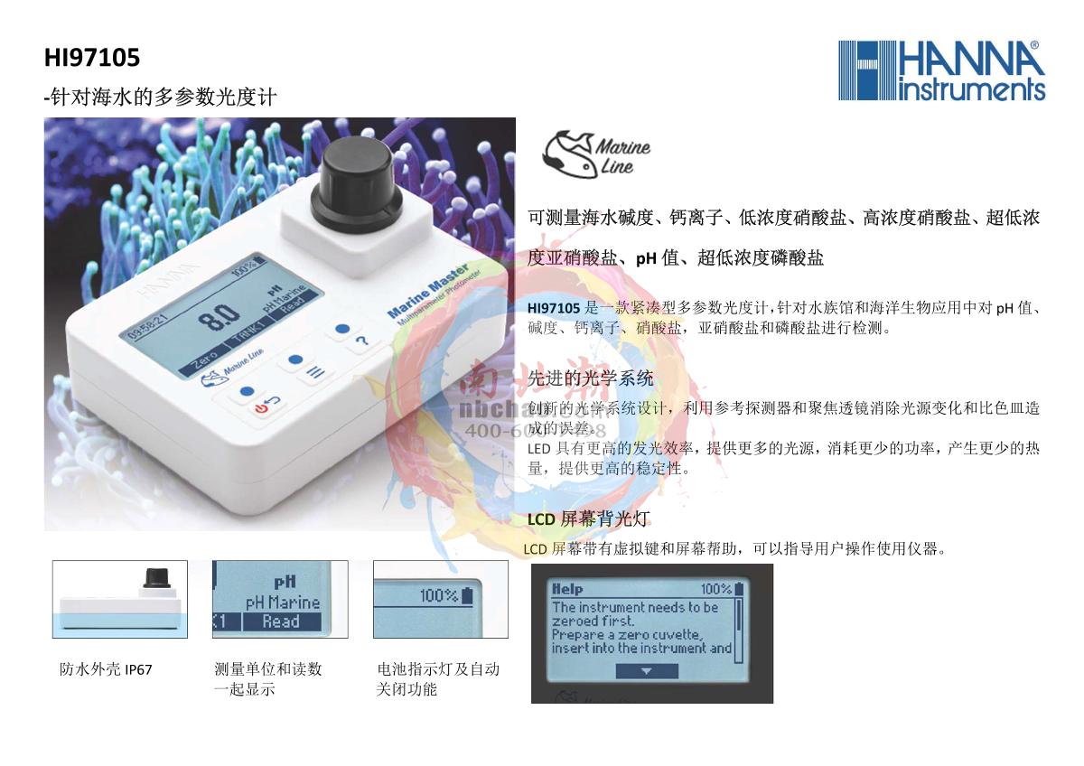 HANNA HI97105 A multiparameter photometer for seawater brochure