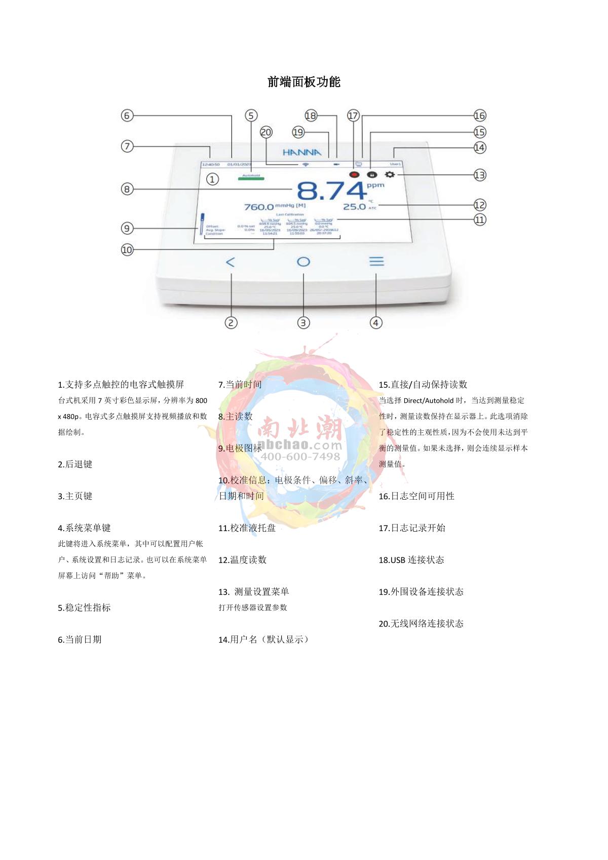 HANNA HI98494 multiparameter Water Quality Analyzer (12 parameters)0.01 pH/0.1mV±0.02pH/±0.5mVAutomatic one-point, two-point, or three-point calibration using HI9828-25 automatically recognizes five standard buffers (pH4.01, 6.86, 7.019.18, 10.01) or one custom buffer¥27300.0SE -