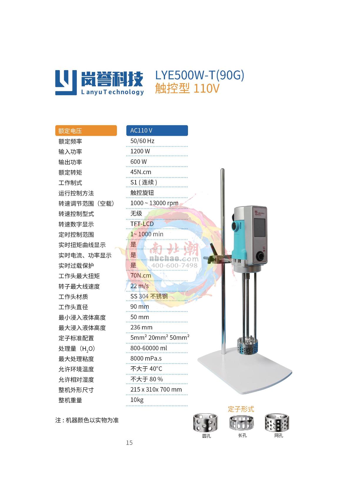 LanYu LYE500W-T(90G) Touch Type Homogenizer (110V) brochure
