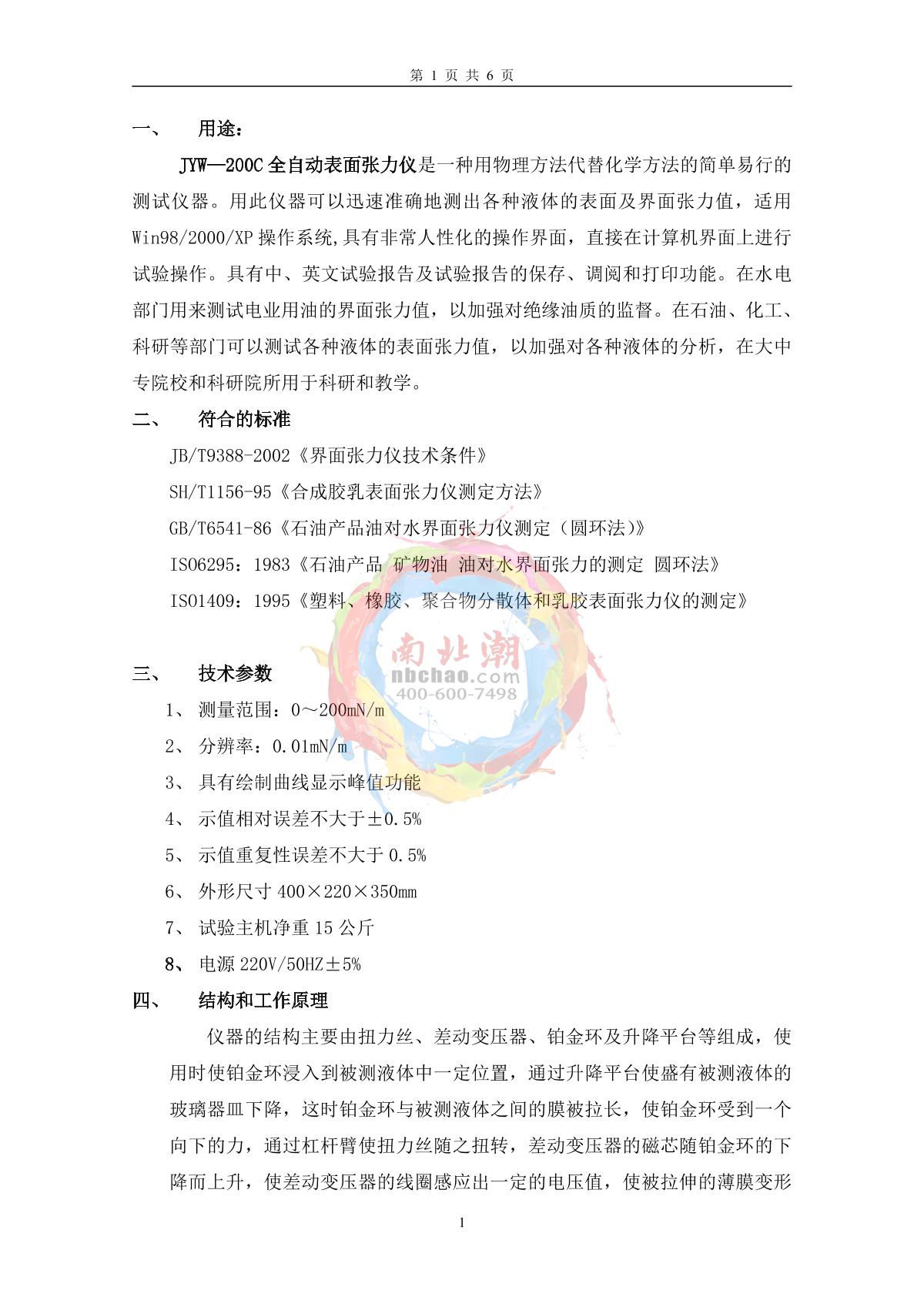 - 1DINGSHENG JYW-200A Automatic interfacial tensIon Meter Manual