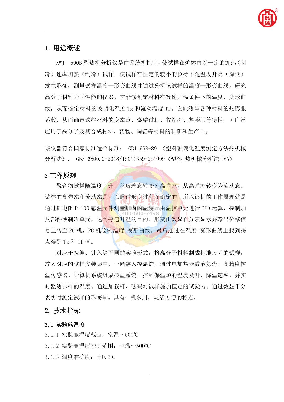 DINGSHENG XWJ-500B Thermomechanical Analyzer Manual,OI
