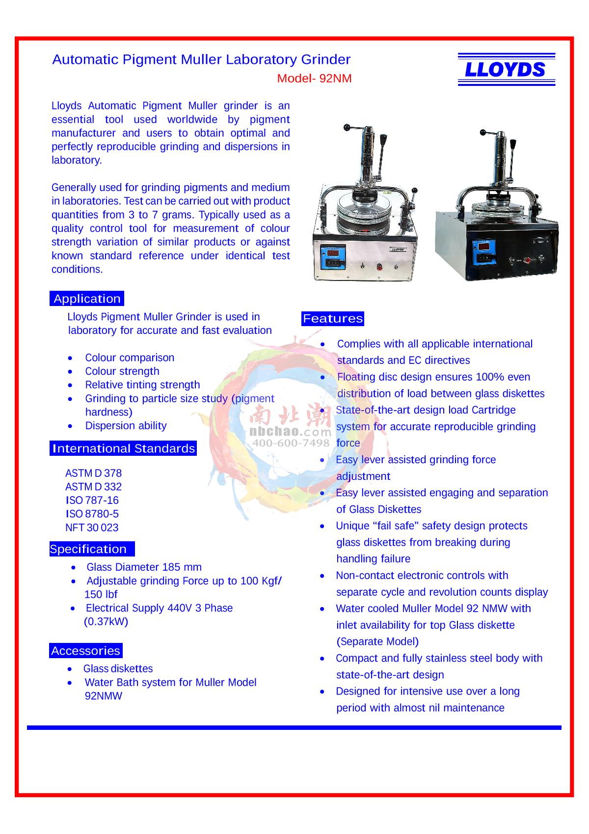 LLOYDS 92NM Automatic pigment Grinder brochure
