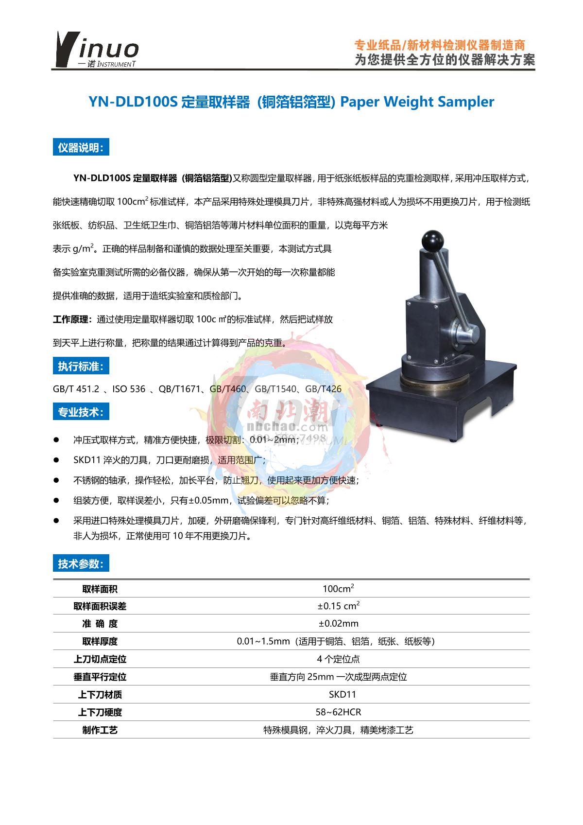 YiNuo YN-DLD100S Quantitative Sampler (Copper Foil Aluminum Foil Type) brochure