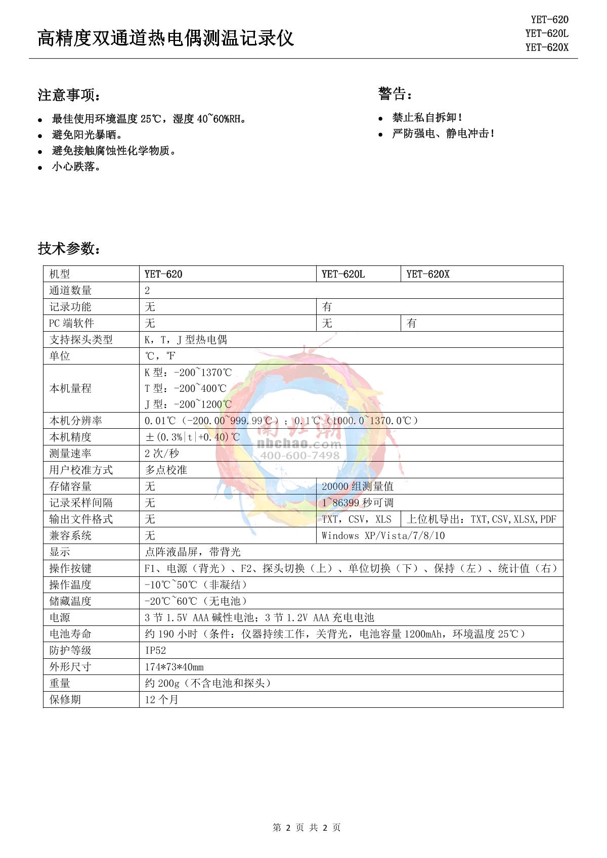 YOWEXA YET-620X-P Thermocouple Thermometer brochure