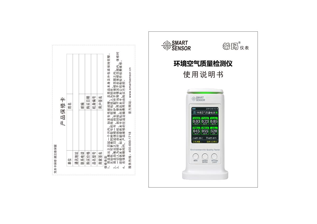 SMART SENSOR ST8306 Environment Air Quality Detector Manual,OI