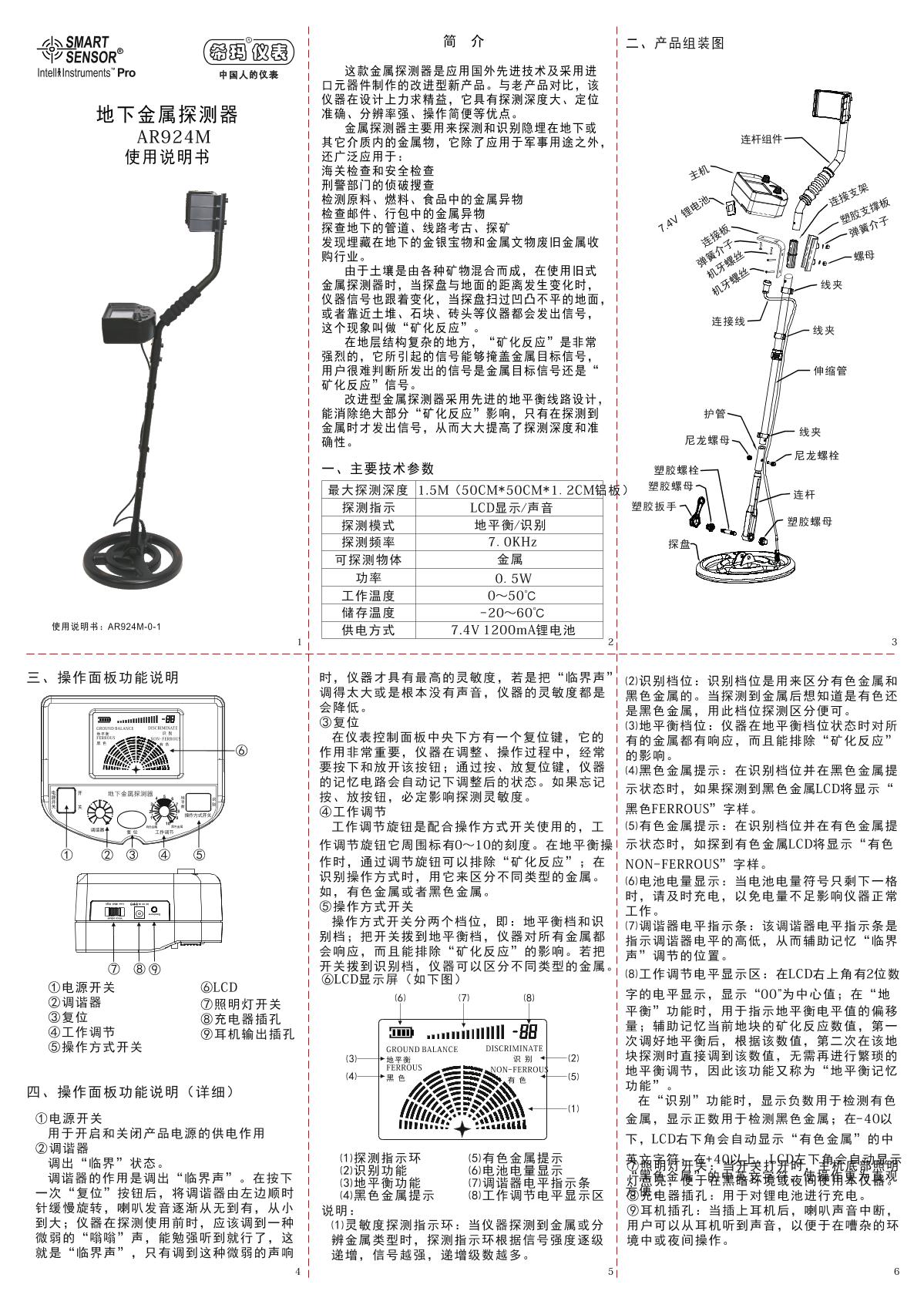SMART SENSOR AR924M Underground metal Detector Manual,OI