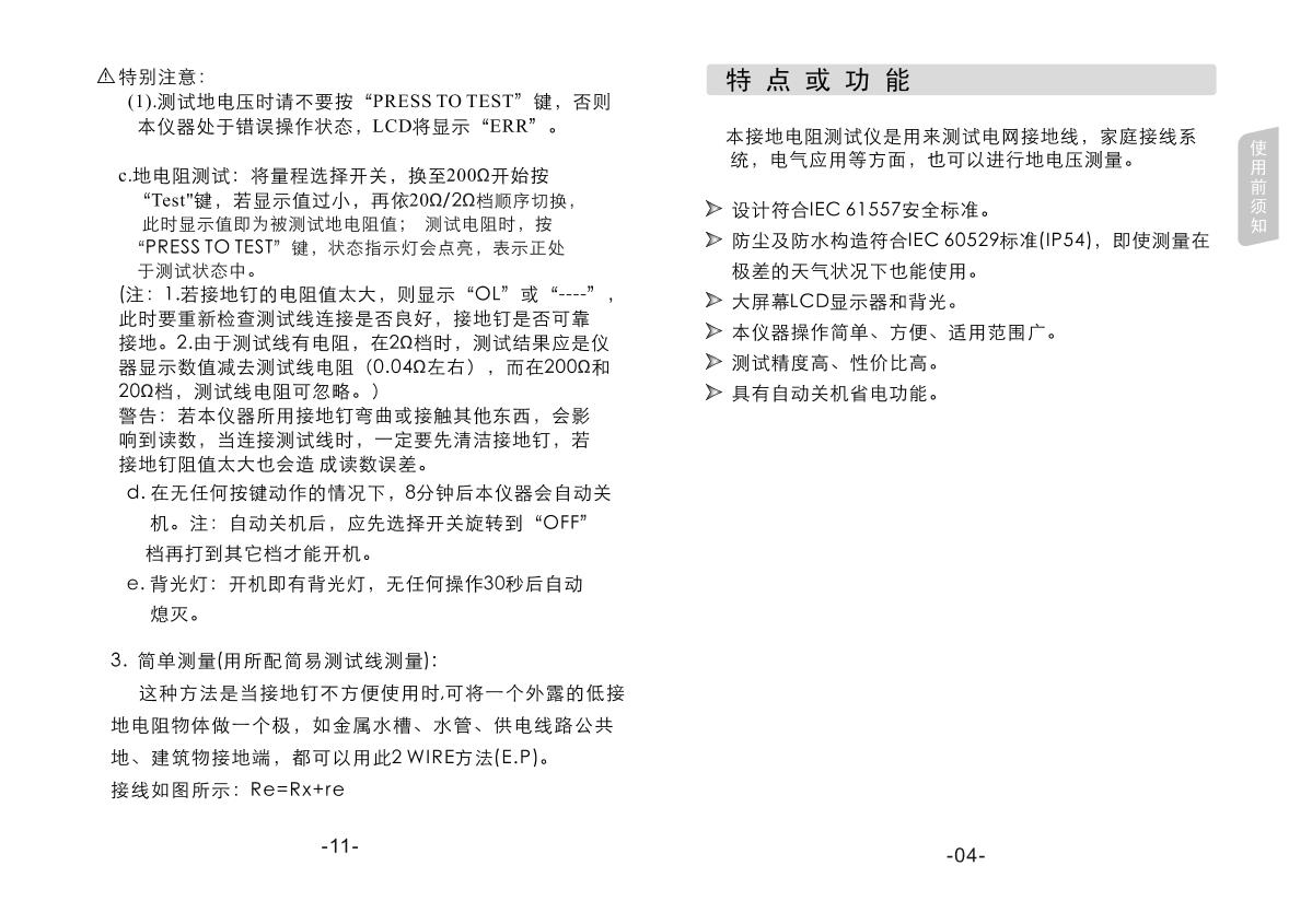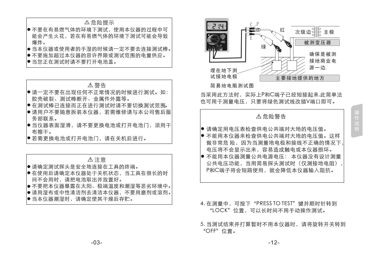 SMART SENSOR AR4105A Grounding resistance Tester Manual,OI