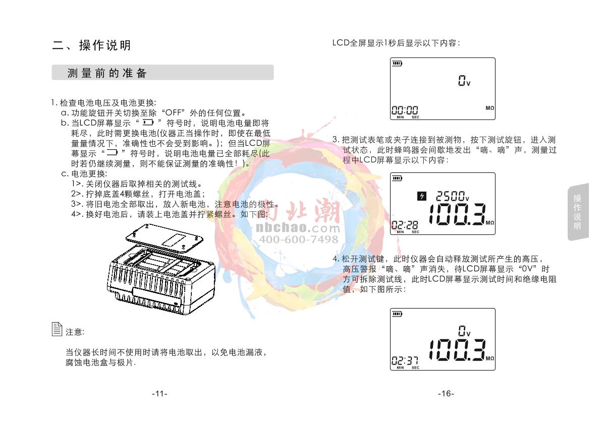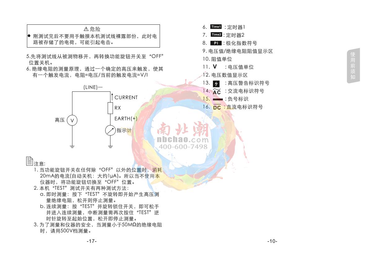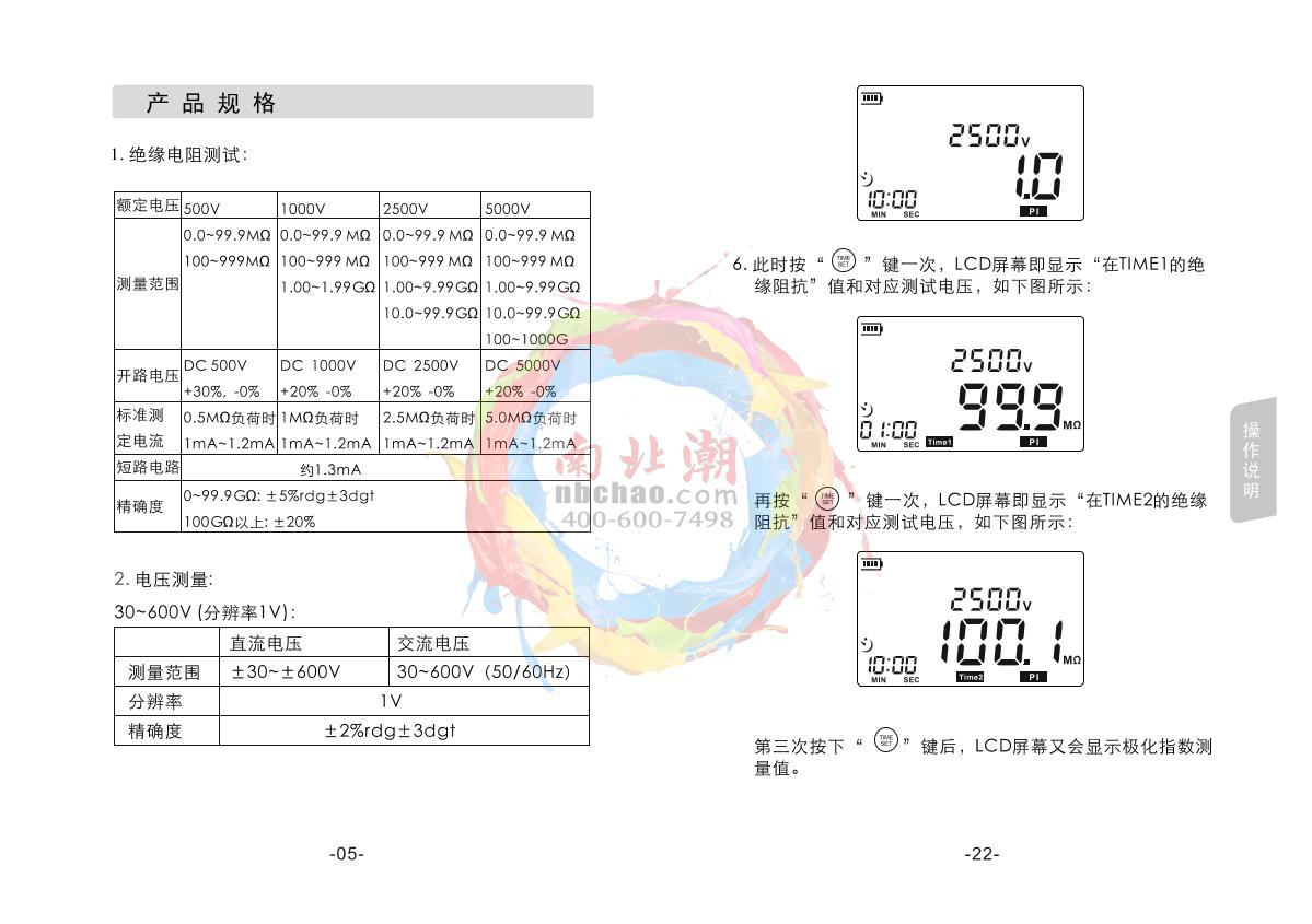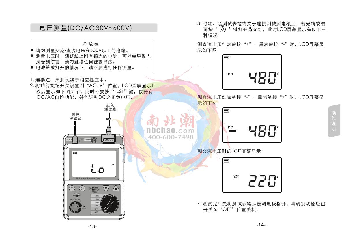 SMART SENSOR AR3125 High Voltage insulation resistance meter Manual,OI