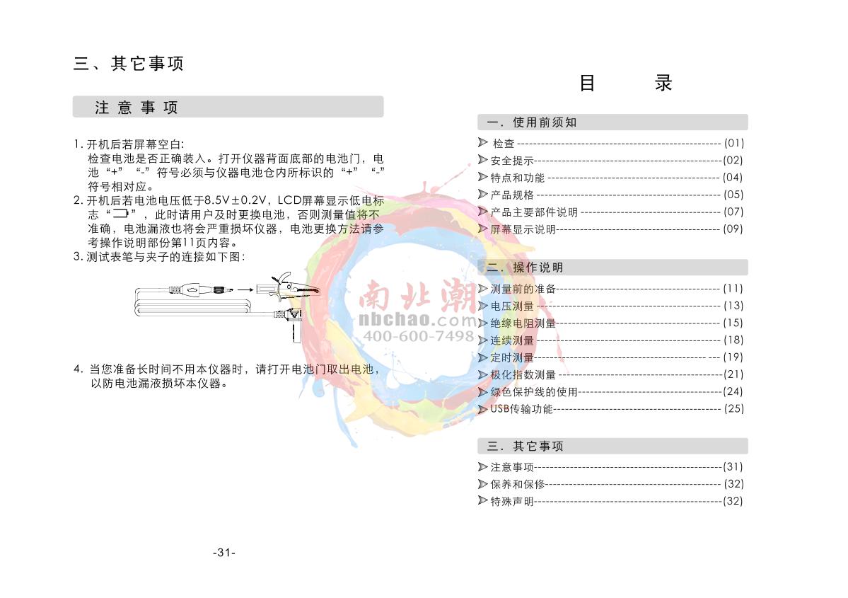 - 7SMART SENSOR AR3125 High Voltage insulation resistance meter Manual