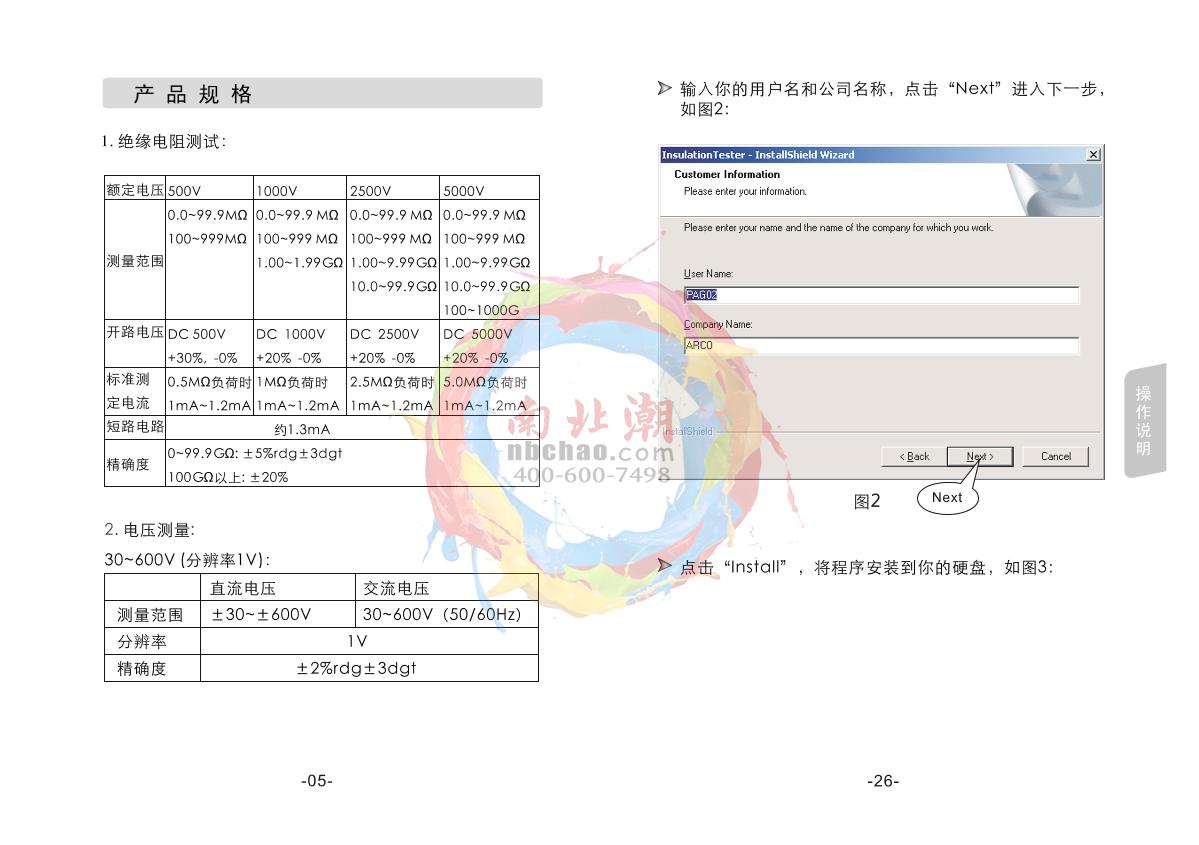 SMART SENSOR AR3126 High Voltage insulation resistance meter Manual,OI