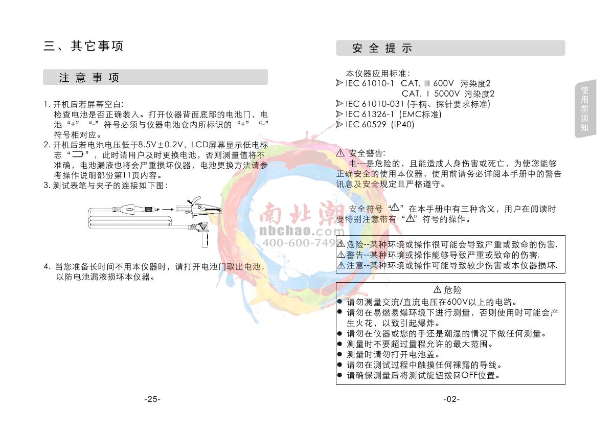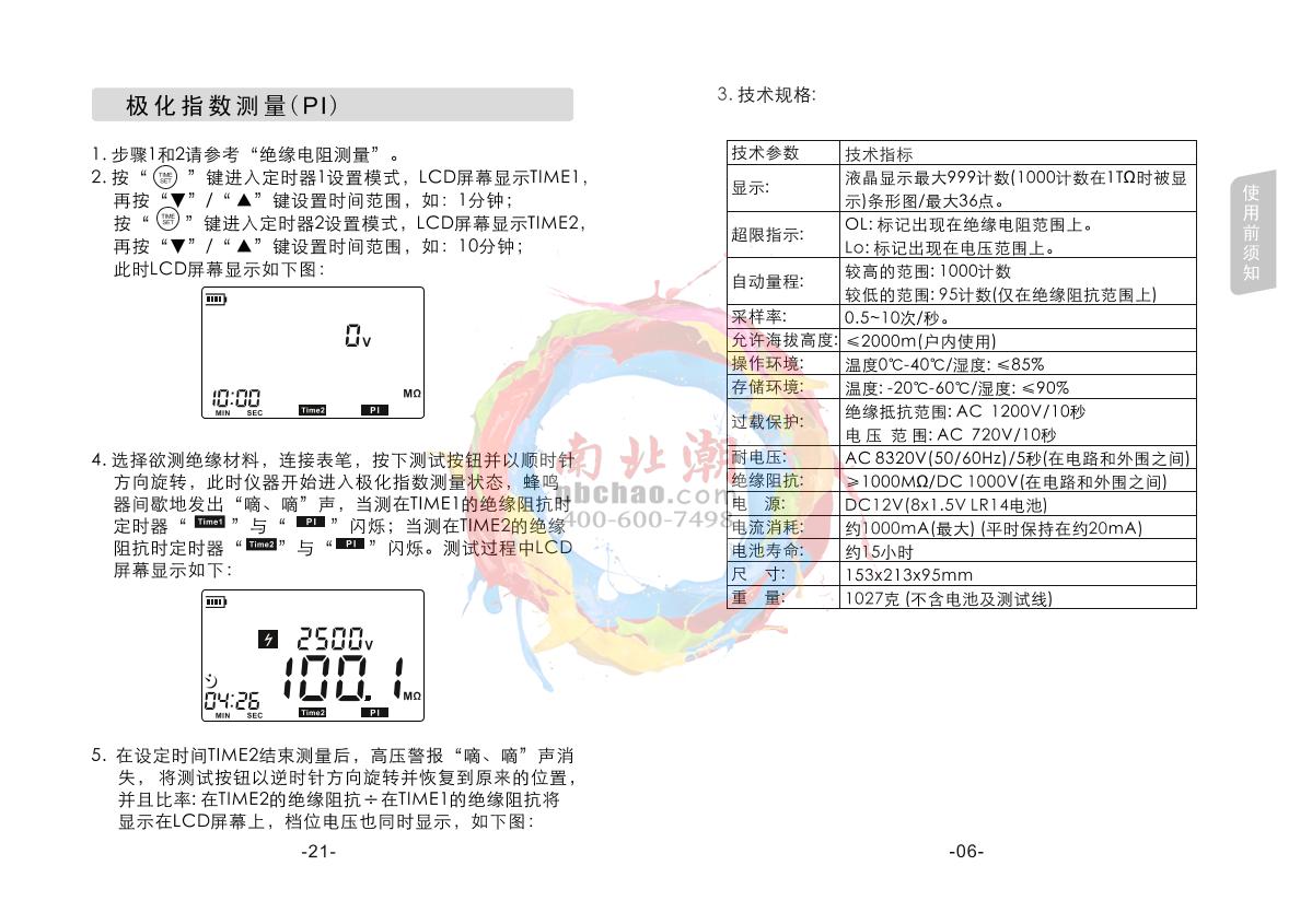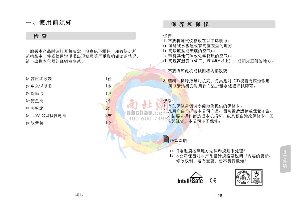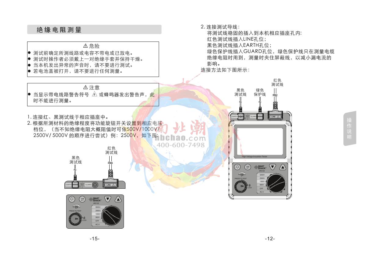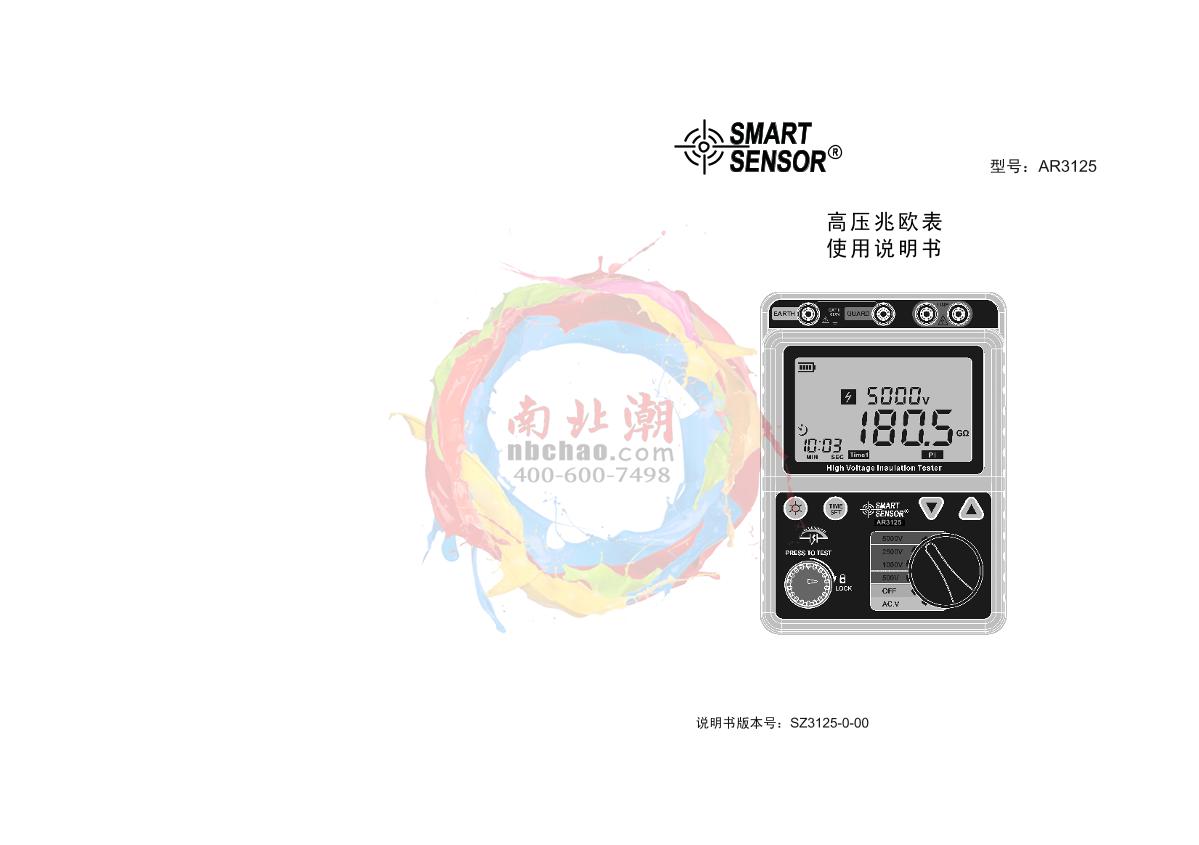 SMART SENSOR AR3125 High Voltage insulation resistance meter Manual,OI