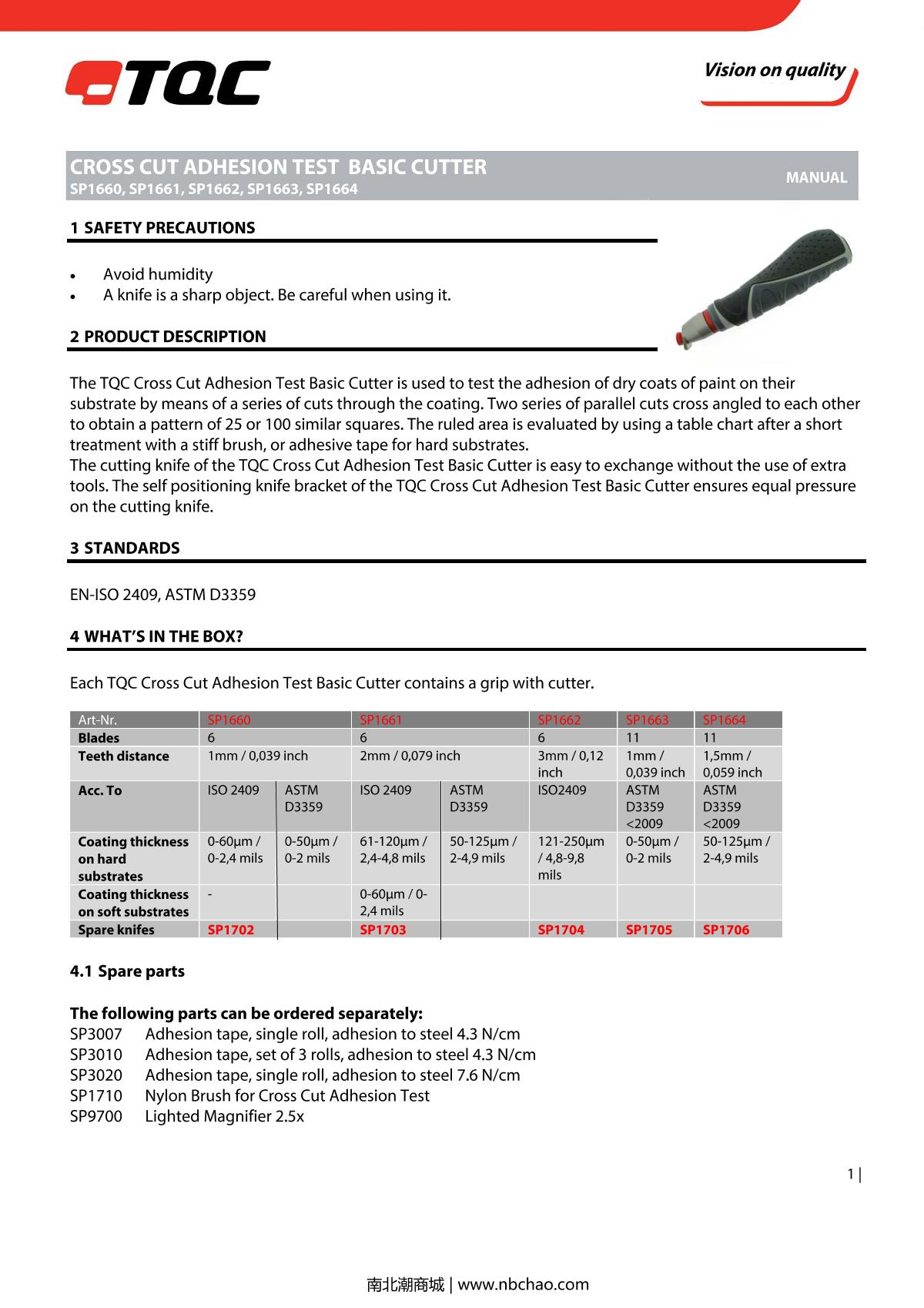 - 3TQC sheen SP1661 Cross-cut Tester Manual