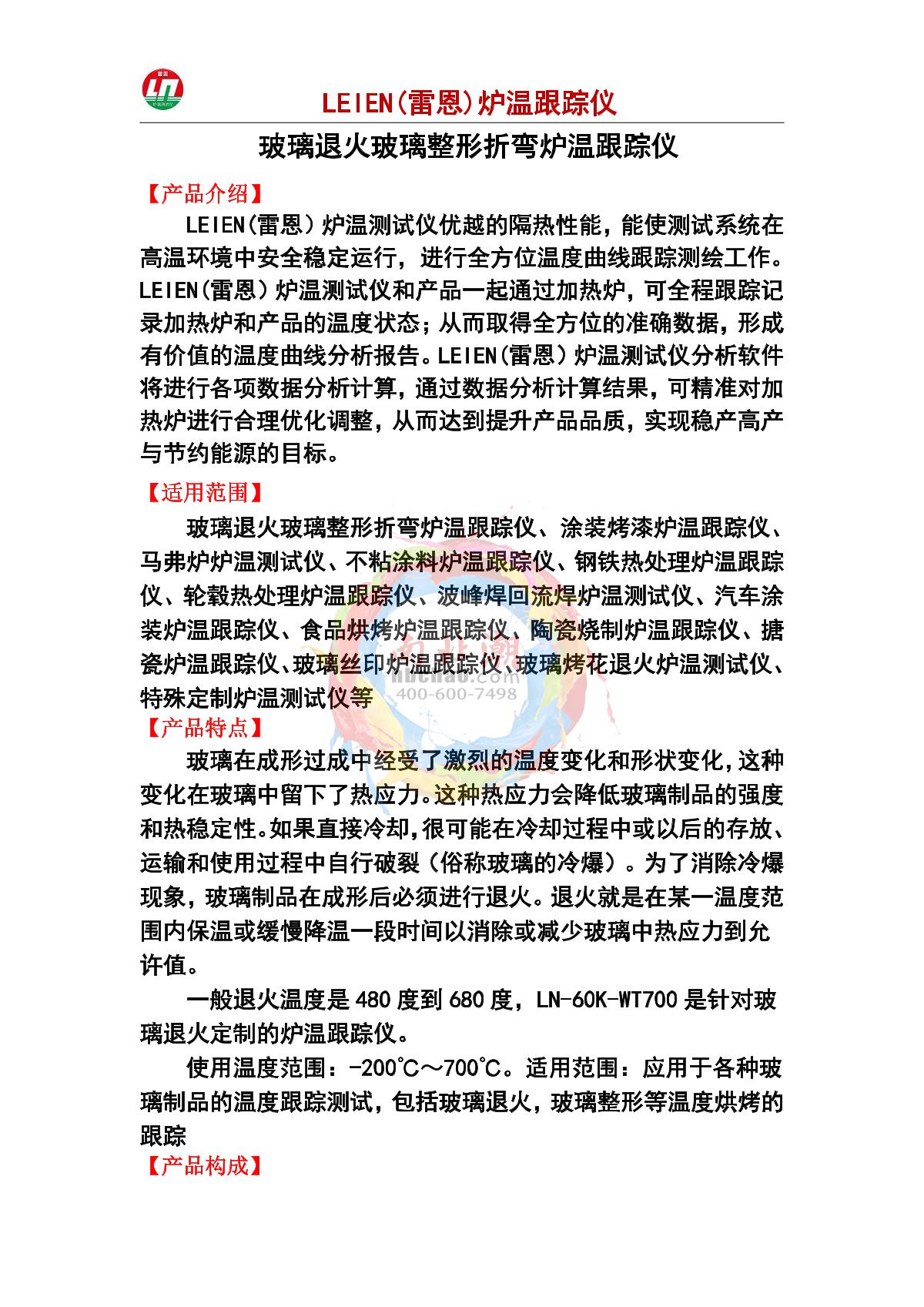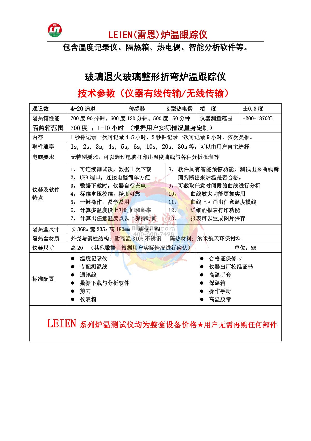 Rennes LN-60K Furnace temperature tracker 6 channels 500 ℃ 1 hour6 channel500 ℃ for 60 minutes, 400 ℃ for 90 minutes, 300 ℃ for 120 minutes500 ℃; 1-30 hours (customized according to the actual situation of the user)¥10500.0SE -