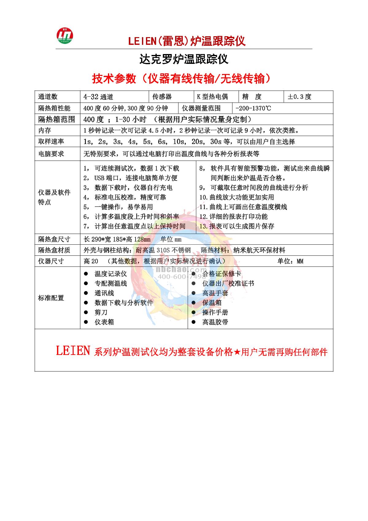 Rennes LN-60K Furnace temperature tracker 6 channels 400 ℃ 1 hour6 channel400 ℃ for 60 minutes, 300 ℃ for 90 minutes400 ℃; 1-30 hours (customized according to the actual situation of the user)¥8900.0SE -