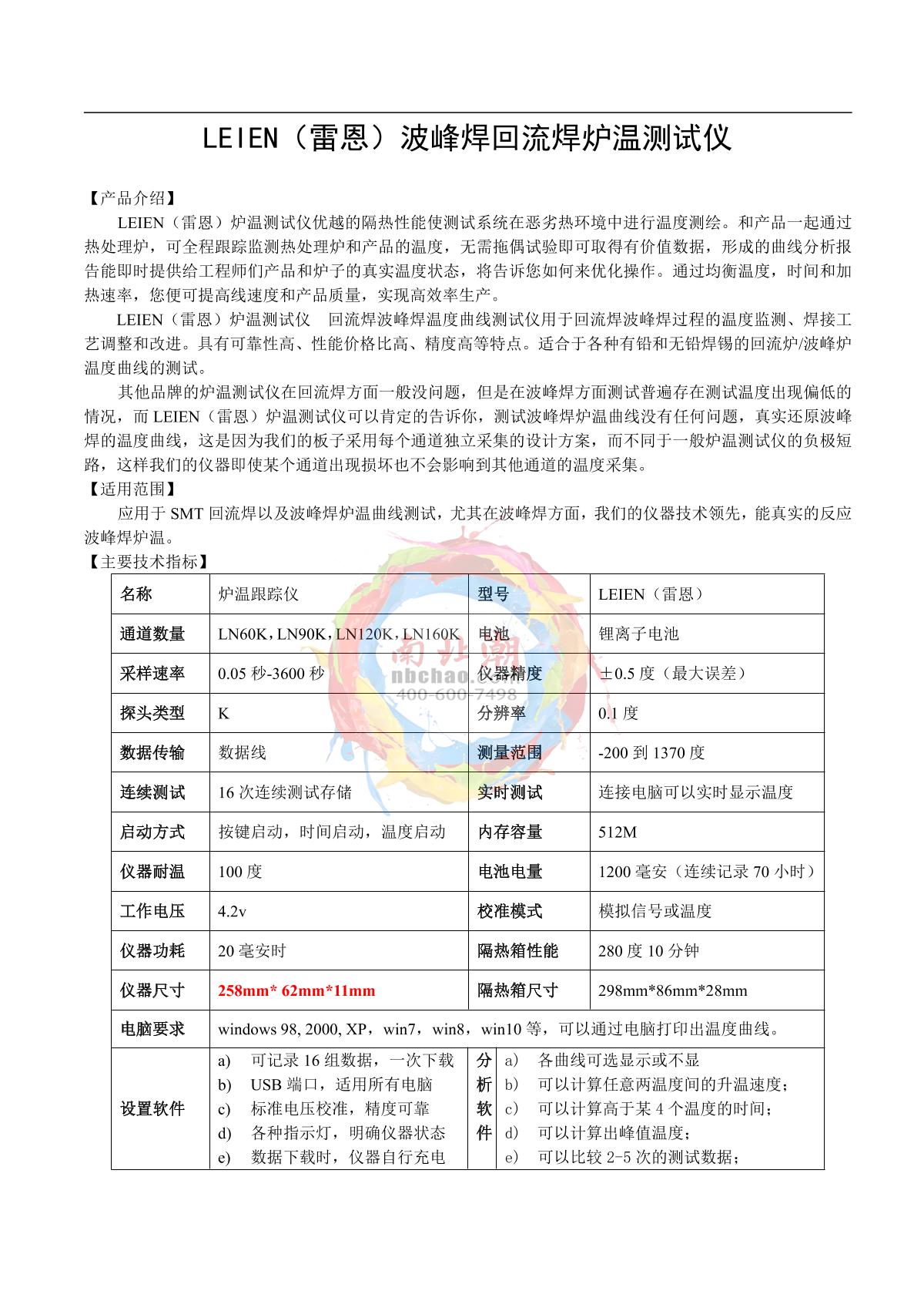 LeiEn LN-90K Furnace temperature tracker for wave soldering and reflow soldering brochure