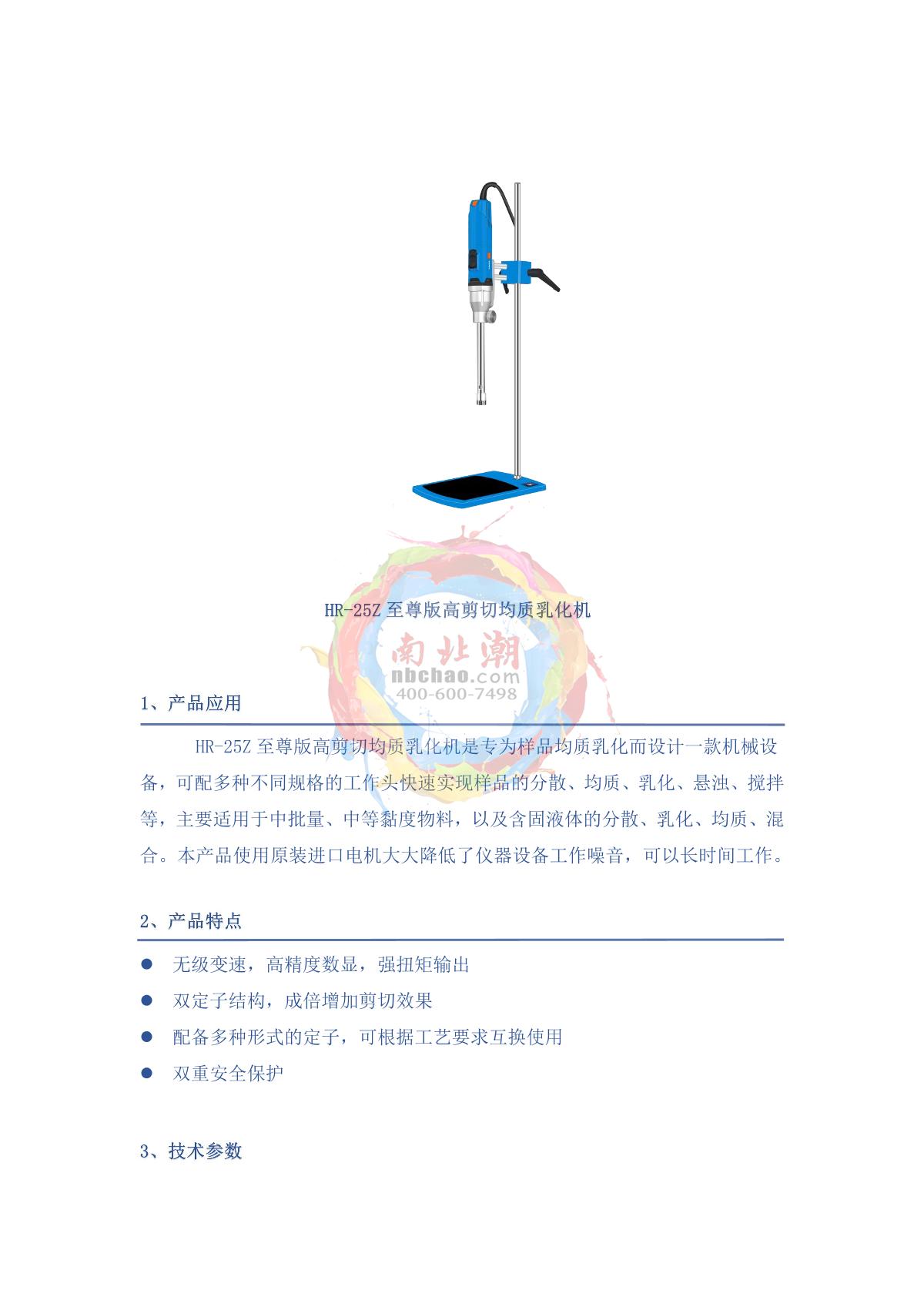 HuXi HR-25Z High Shear Homogeneous Mulser brochure