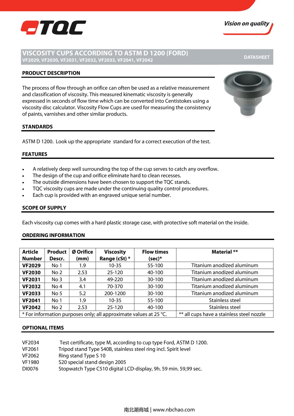 TQC sheen VF2032 Ford Viscosity Cup Manual,OI