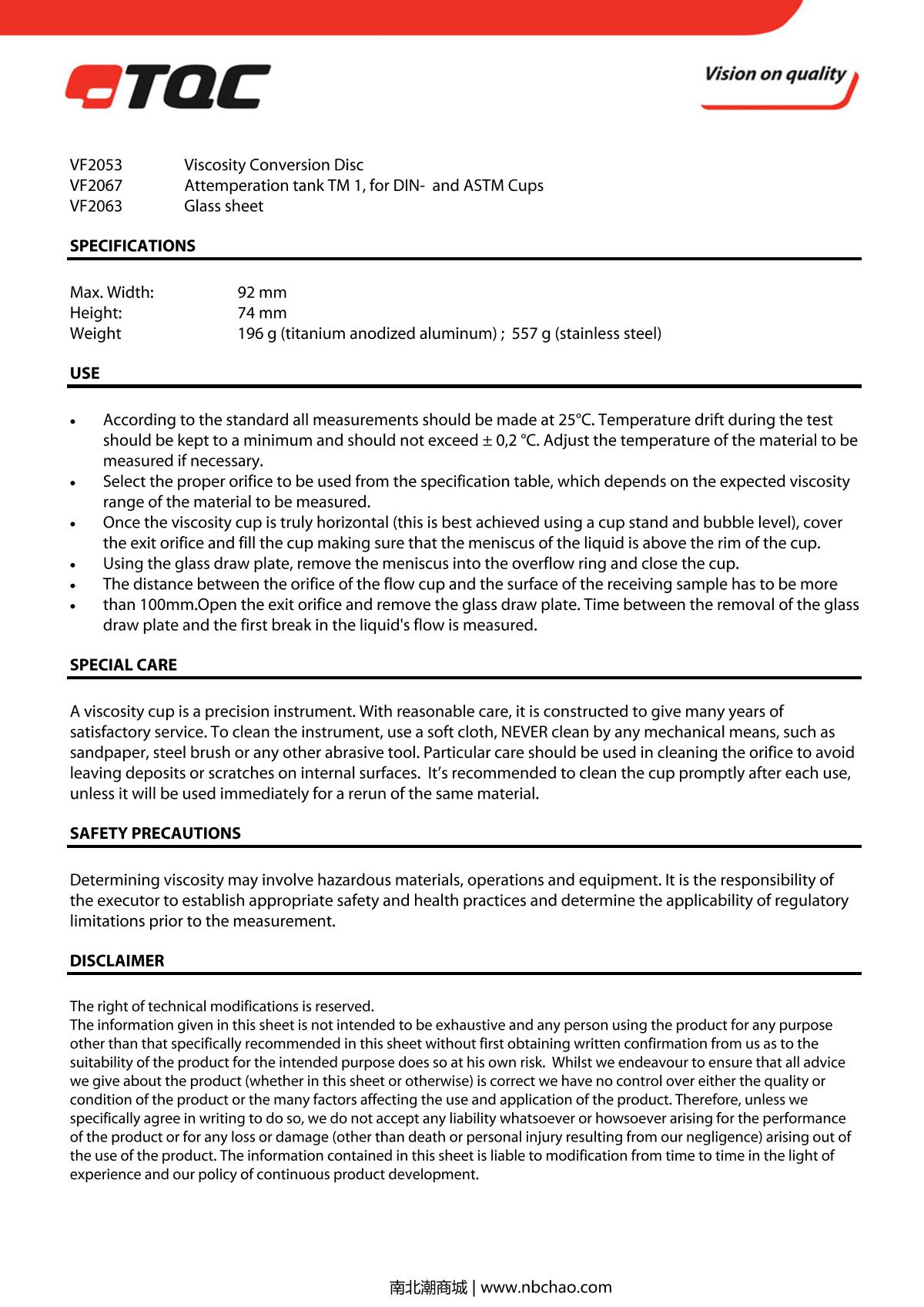 - 10TQC sheen VF2216 Viscosity cup Manual