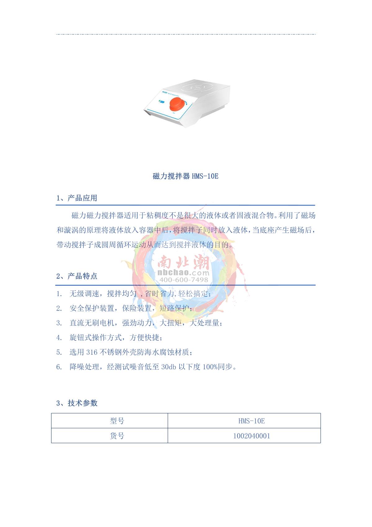 HuXi HMS-10E Magnetic Stirrer brochure