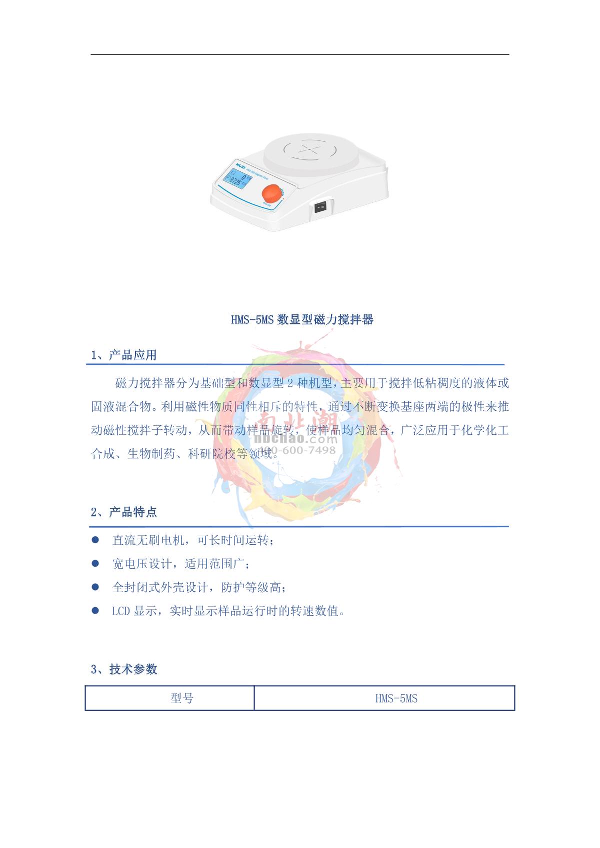 HuXi HMS-5MS Magnetic Stirrer brochure