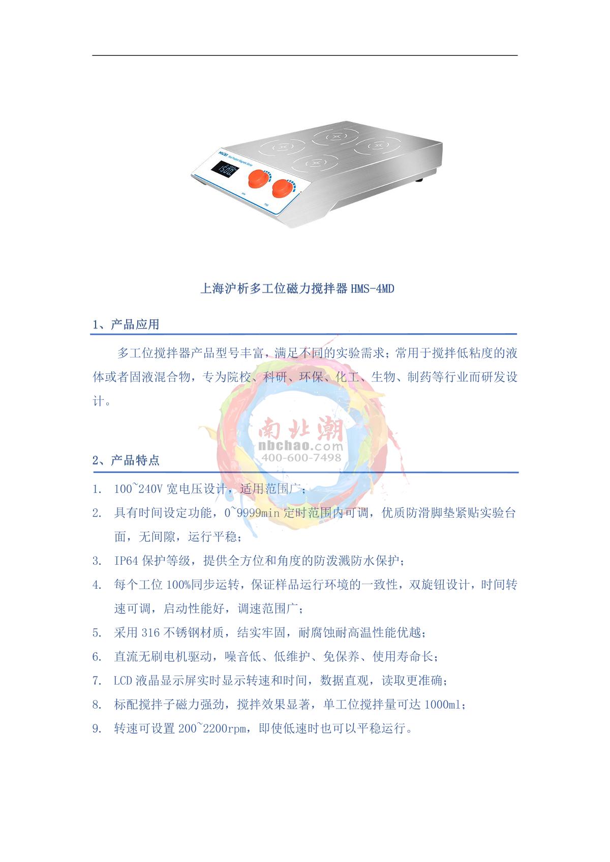 HuXi HMS-4MD Synchronous Control Multi-Station Magnetic Stirrer brochure