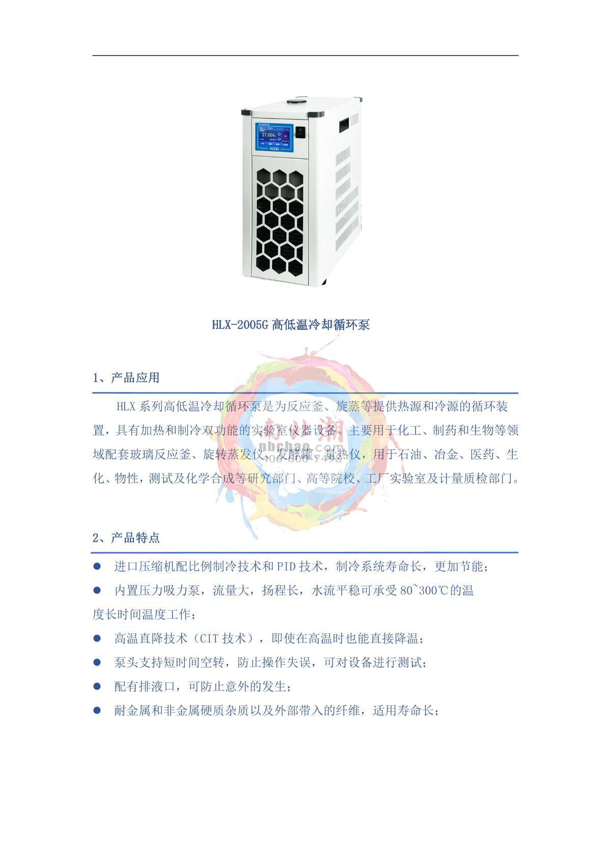 HuXi HLX-2005G High-low temperature coolant Circulating Chiller brochure