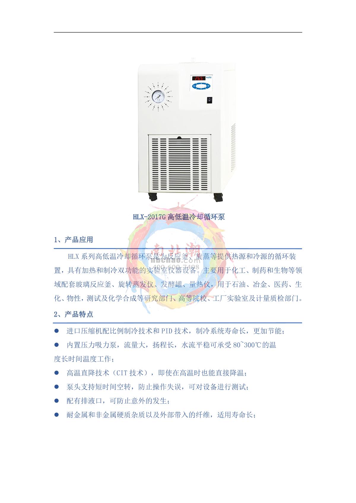 HuXi HLX-2017G High-low temperature coolant Circulating Chiller brochure