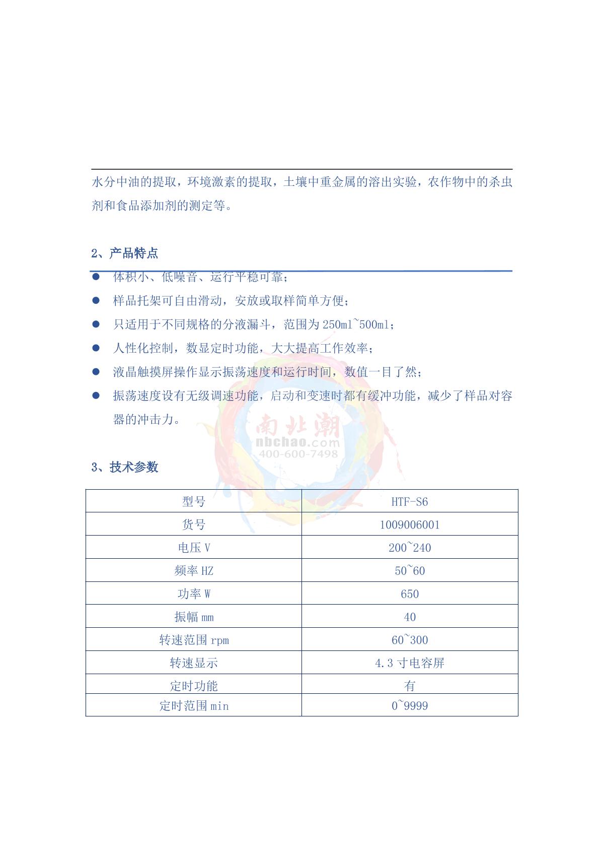 HuXi HTF-S6 SeparatoryFunnel Shaker brochure