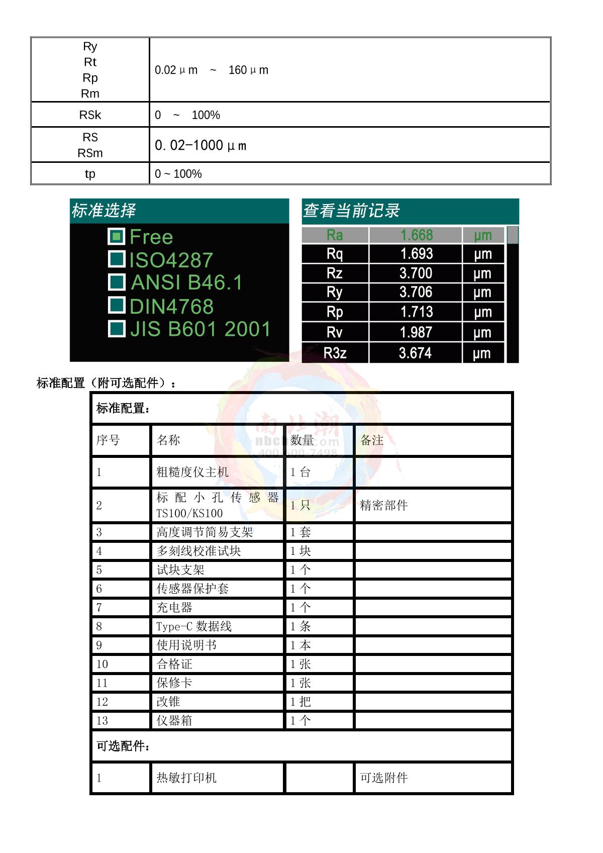 Surface roughness Tester KAIRDA NDT110 Metal and Non-metallic parts surface roughness testing instrumentdigital displayRa、Rz、Rq、RtRa、 Rq: 0.05μm ~ 15μm RzRt: 0.1μm ~ 50μmSE -