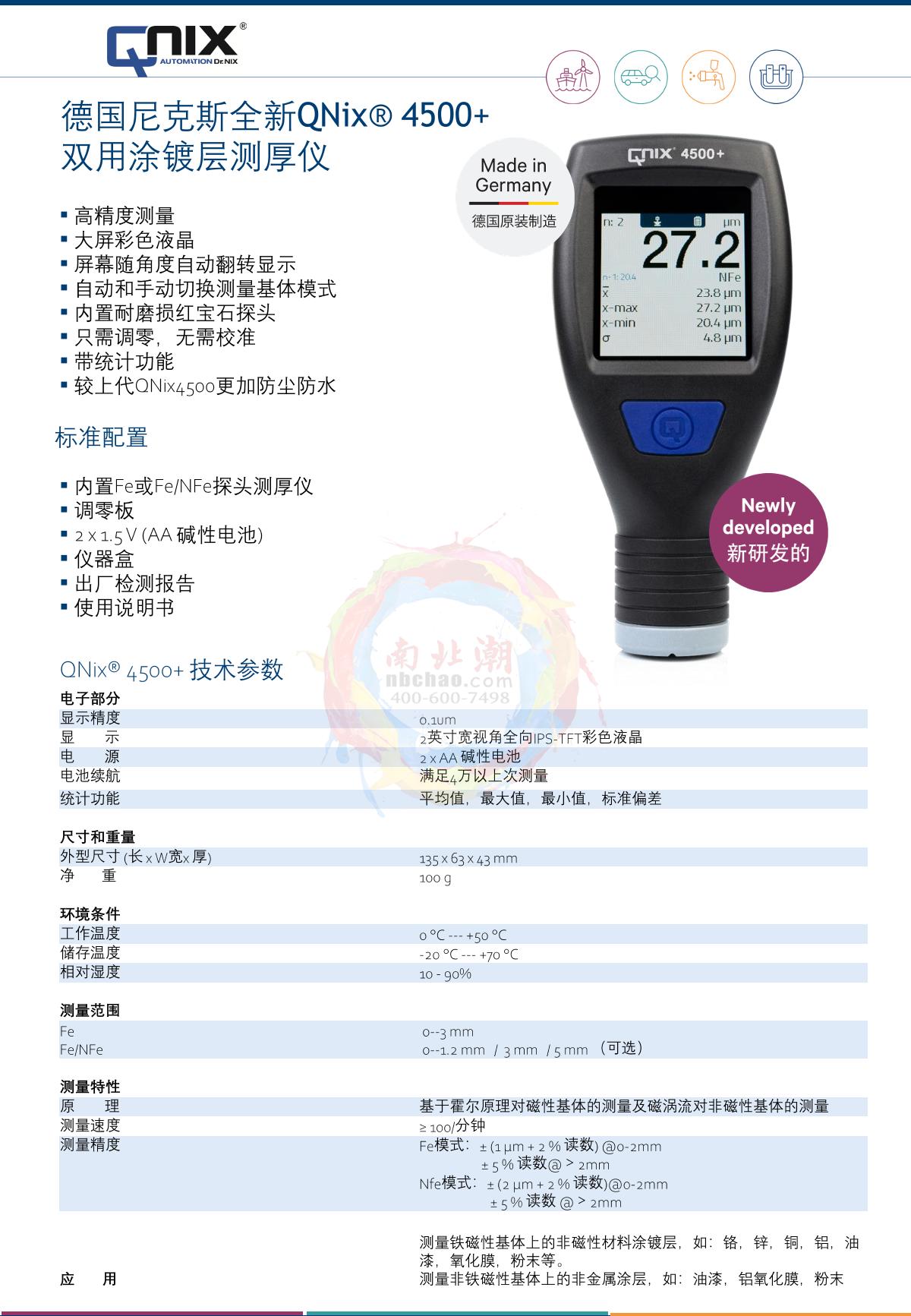 Germany Knix QNix4500P/5 paints Thickness Gauge magnetic Induction/eddy Current thickness measurement 5/3mmMagnetic Induction + eddy CurrentFe:0~5000μm;NFe:0~3000μm±3% -
