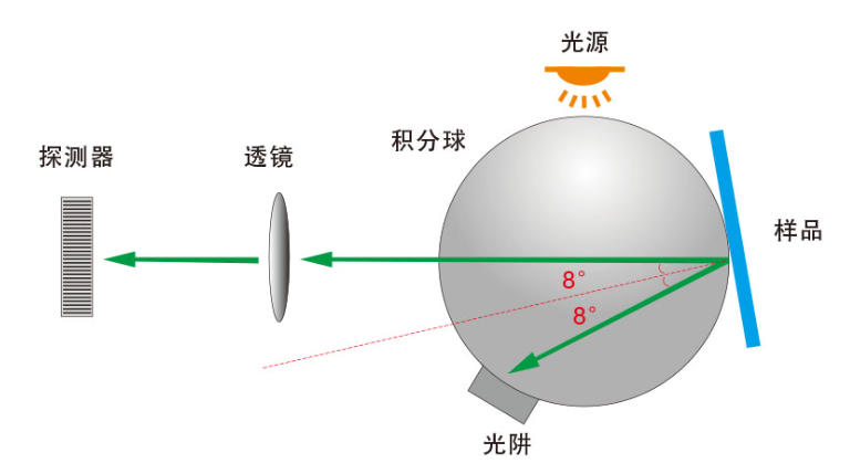 The D/8 (SCI/SCE) measurement structure is used to reflect the color itself more objectively, reduce the influence of the surface texture of the object on the test results, and comply with the standards CIE No.15, GB/T 3978, GB 2893, GB/T 18833, ISO7724-1, ASTM E1164, DIN5033 Teil7