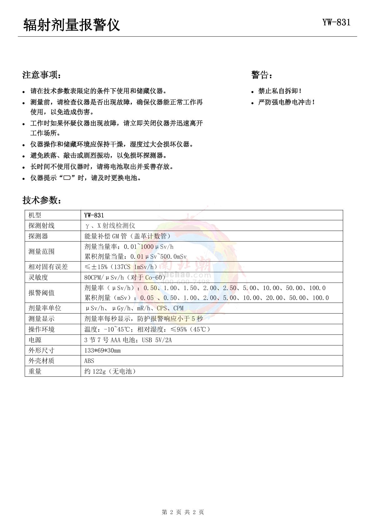 YOWEXA YW-831-D Radiation dose alarm brochure