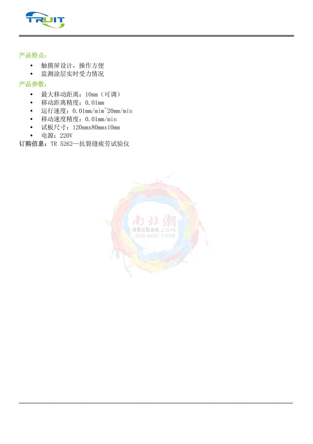 TRUIT TR 5262 Anti-cracking fatigue Tester brochure