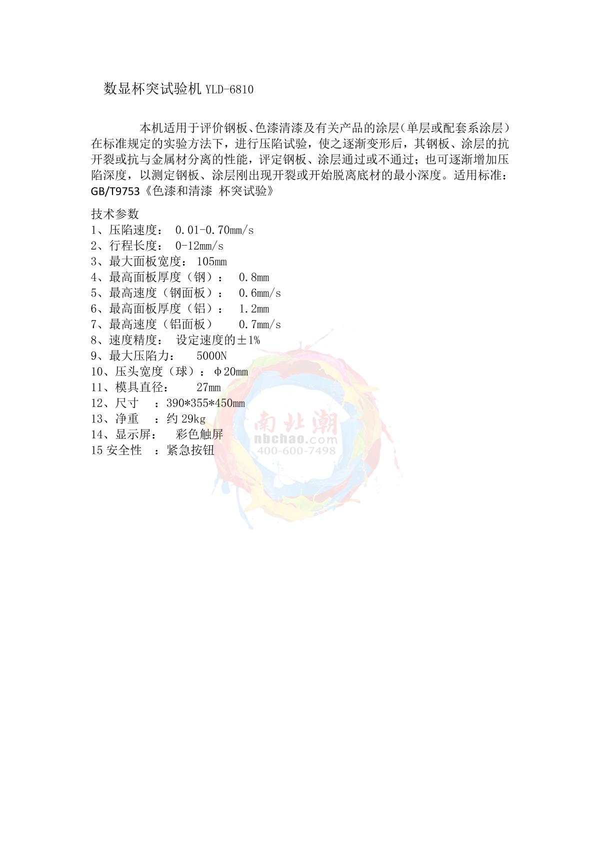 - 6YongLiDa YLD-6810 Cupping test machine brochure