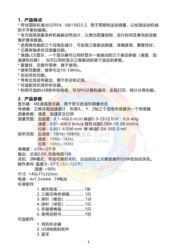 LANDTEK VM-6380-3 Vibration Measuring Instrument (Three Channel)Three Piezoelectric Vibration Sensors0.1~400m/s² 峰值0.3~1312ft/s² 0.0~40g0.01~ 400mm/s True RMS 0.004~ 16.0inch/s¥4300.0SE