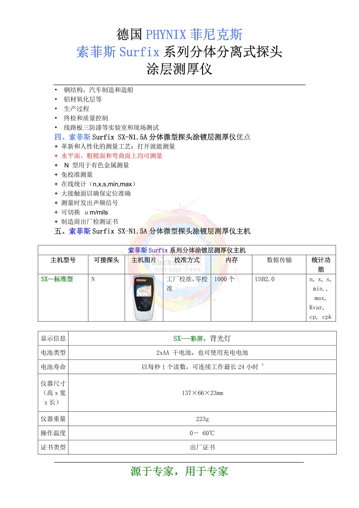 PHYNIX Sophia Surfix SX-N1.5A Split type probe Coating Thickness Gauge brochure