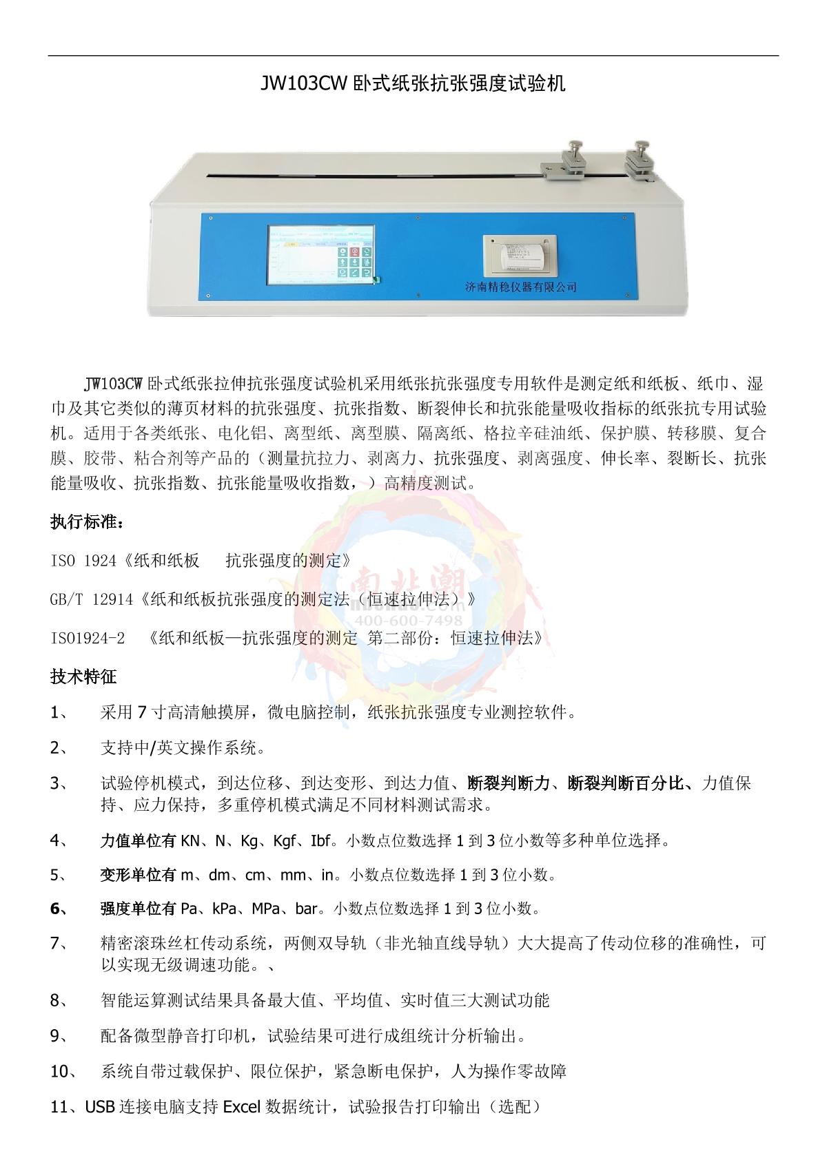 - 2jingwen JW103CW-300N Horizontal Tensile Strength Tester Manual